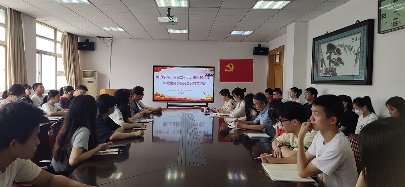 党委在院行政楼四楼会议室举行2022年“喜迎二十大,奋进新征程”毕业生党员主题教育活动暨新党员入党宣誓仪式。院党委书记贾冠忠、本科生支部书记、全体毕业生党员参加活动。仪式由学院纪委副书记、党委秘书王美主持。