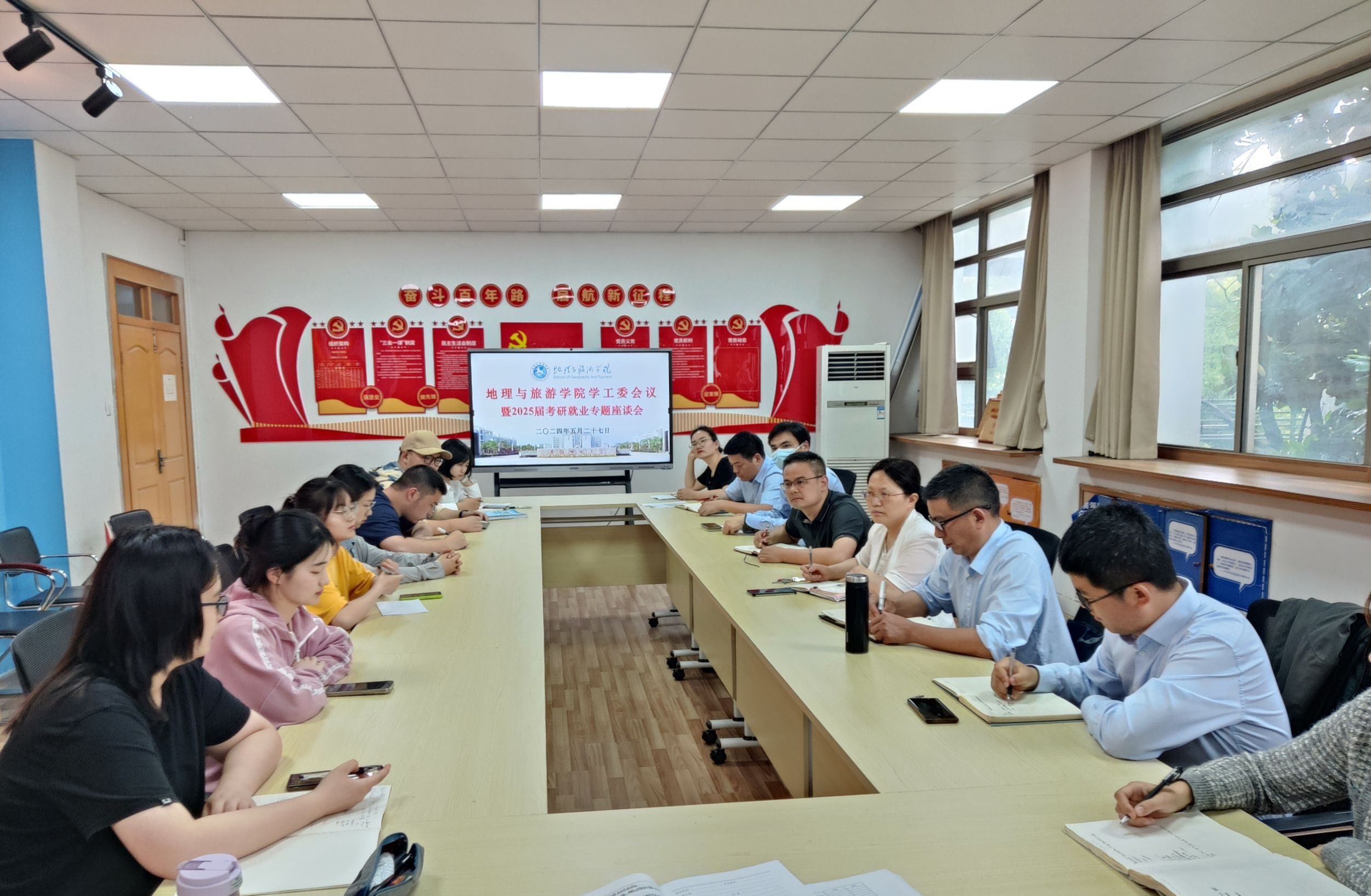 全面落实,群策群力“出实招”。学院分专业开展了2025届考研动员暨就业推进会,会上,学院院长方凤满强调,同学们要认清考研就业形势,做好就业与考研的理性选择;要科学规划,自觉提高自身的竞争力和能力,充分做好考研就业的准备工作;要端正心态,不要过于焦虑,不论是考研还是就业,都要认真准备,全力以赴。地理科学专业负责人朱永恒、地理信息科学专业负责人宋立生、城乡规划专业负责人韩会然等结合近几年考研数据讲解考研注意事项,引导同学们根据自身实际情况,选择合适的院校和专业,持之以恒,科学备考。胡春生等教师代表分别从自身求学经历、考研学校专业选择、计划制定等方面进行详细分析,详细解读了地理学科评估C+及以上的院校师资力量、研究领域、往年研考招录情况等,为学生考研择校择专业提供参考依据。