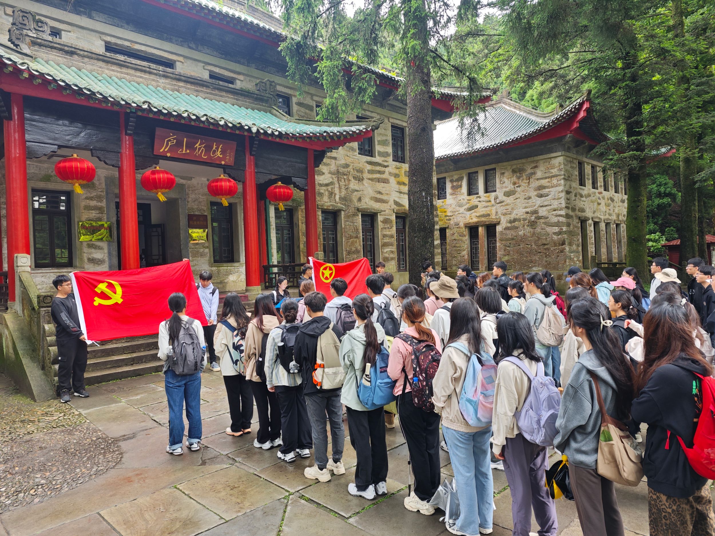 实习期间,同学们还参观了毛泽东同志旧居、庐山抗战博物馆、庐山抗战纪念碑等红色纪念地,在庐山抗战博物馆门前开展了红色教育“微党课”。陈祥云在微党课中引用习近平总书记对新时代青年“有理想、敢担当、能吃苦、肯奋斗”的嘱托,希望同学们跑好实现中华民族伟大复兴中国梦的“接力赛”,勇挑时代重任,展现青年底色。