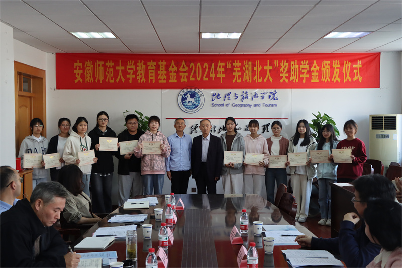 仪式上,付勇介绍了“芜湖北大”奖助学金概况以及评选过程。童劭琼介绍了“芜湖北大”奖助学金的设立初衷,讲述了北京大学芜湖校友会与安徽师范大学难以割舍的情系。项家春宣读了颁发决定,通报了2024年度“芜湖北大”奖助学金获奖受助学生名单。吕国猛、童劭琼、周玉森、王如意、项家春、贾冠忠等分别为获奖代表同学颁发获奖证书。
