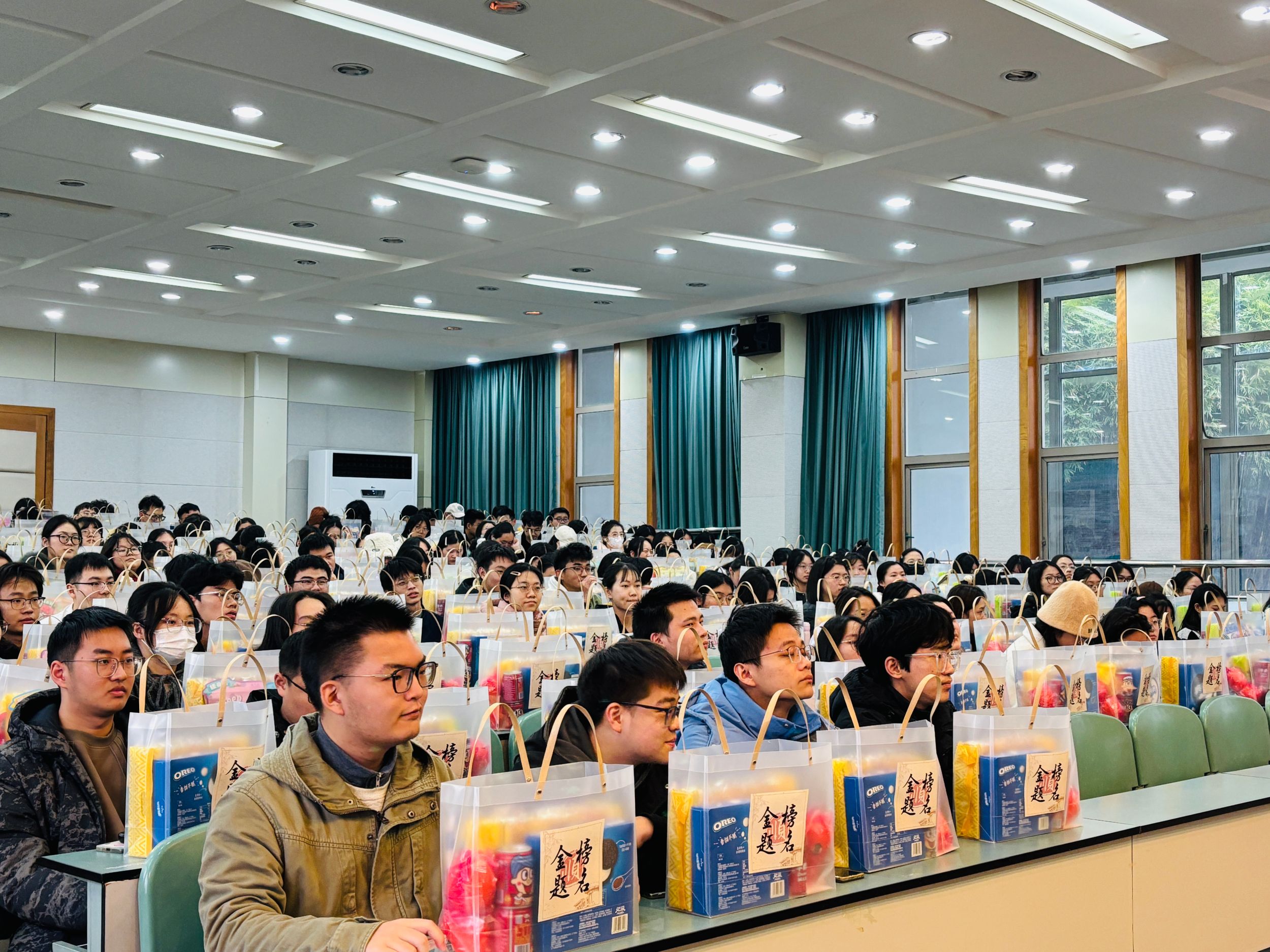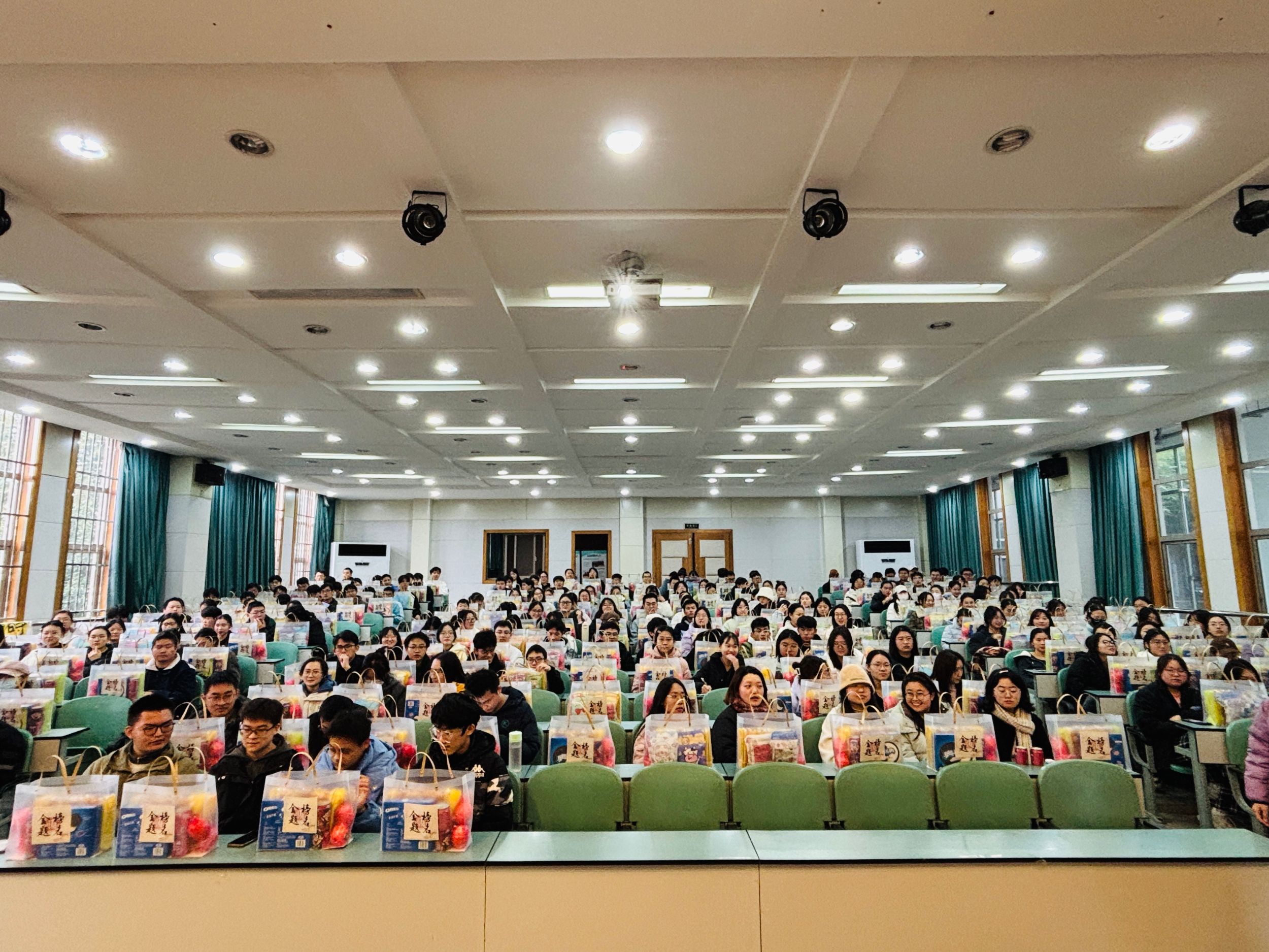 最后,学院领导和老师们将精心准备的牛奶、面包、水果等慰问品发放到每一位考研学子手中。