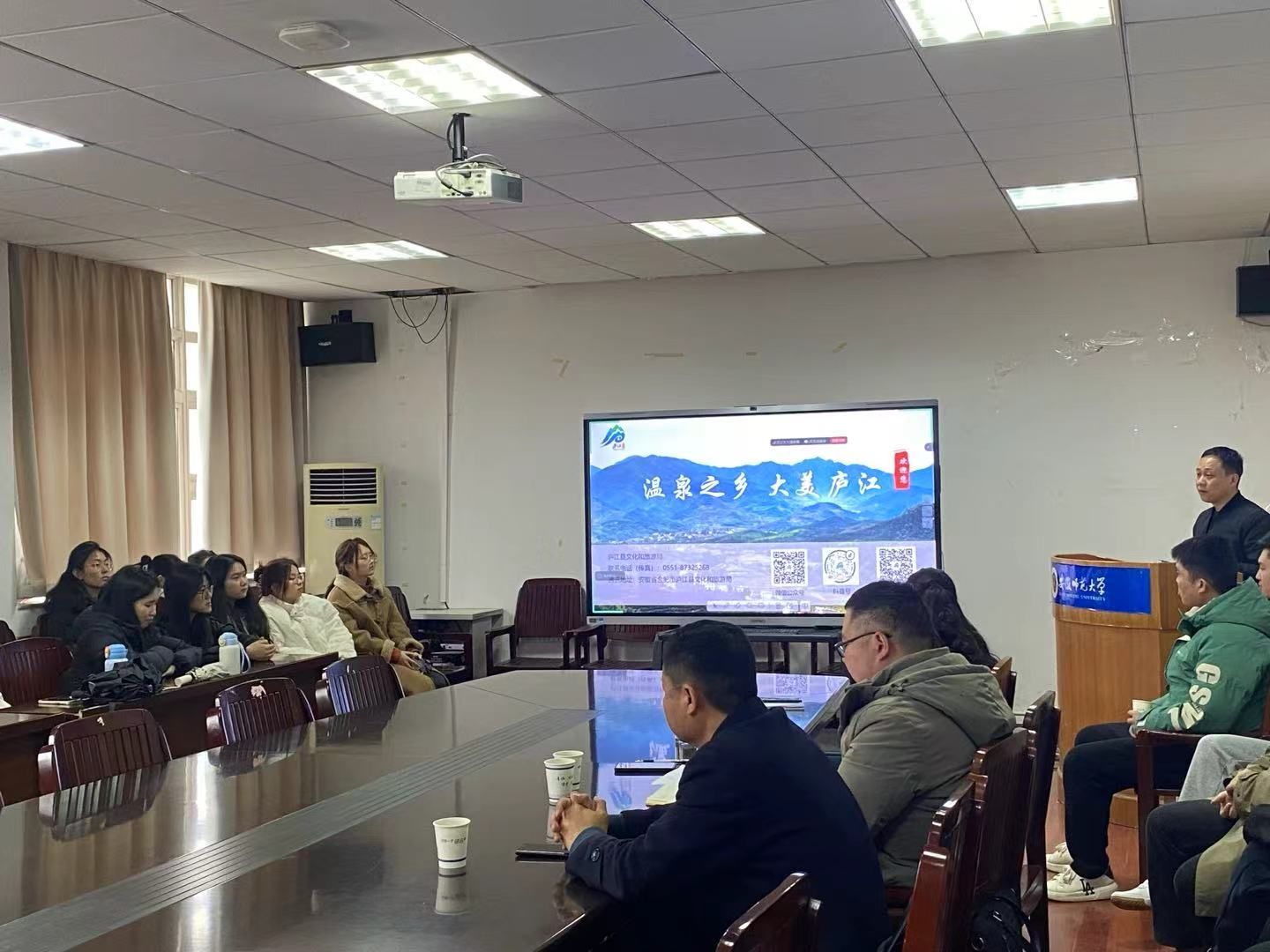 座谈会上,庐江县有关领导与学院领导、专业教师围绕“文旅产业升级与人才精准供给”展开深度对话。黄炯详细介绍了庐江县“全域旅游示范区”建设成果及“十四五”期间文旅融合重点项目和人才需求方向。方凤满从学院专业特色和人才培养质量的优势出发,指出了后续政校合作交流的重点内容。