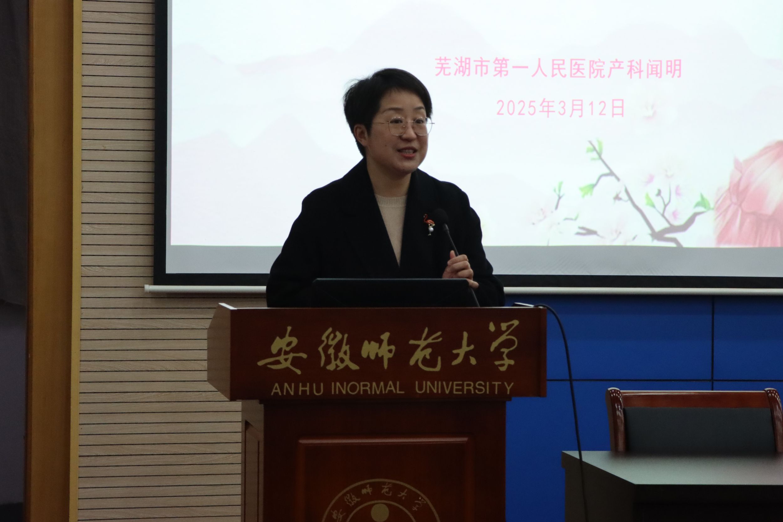 活动现场,李娟在致辞中向芜湖市第一人民医院专家团队的来访表示欢迎。她指出,希望通过此次健康科普活动,为女性师生提供交流的平台,增强自我保健意识,更加关注自身健康。芜湖市第一人民医院产科主任闻明围绕“关爱女性健康,绽放女性魅力”主题,进行了女性健康科普。她详细介绍了关爱乳腺健康、生殖健康、怀孕分娩注意事项以及尿失禁等预防和治疗方法,并从女性生理、心理等方面提供了健康指导,让大家对女性健康相关知识有了更深入的了解。乳腺外科主任韩涛进行了乳腺健康专题科普。他详细介绍了乳腺常见疾病的预防、筛查和治疗方法,强调了定期自我检查和定期体检的重要性。