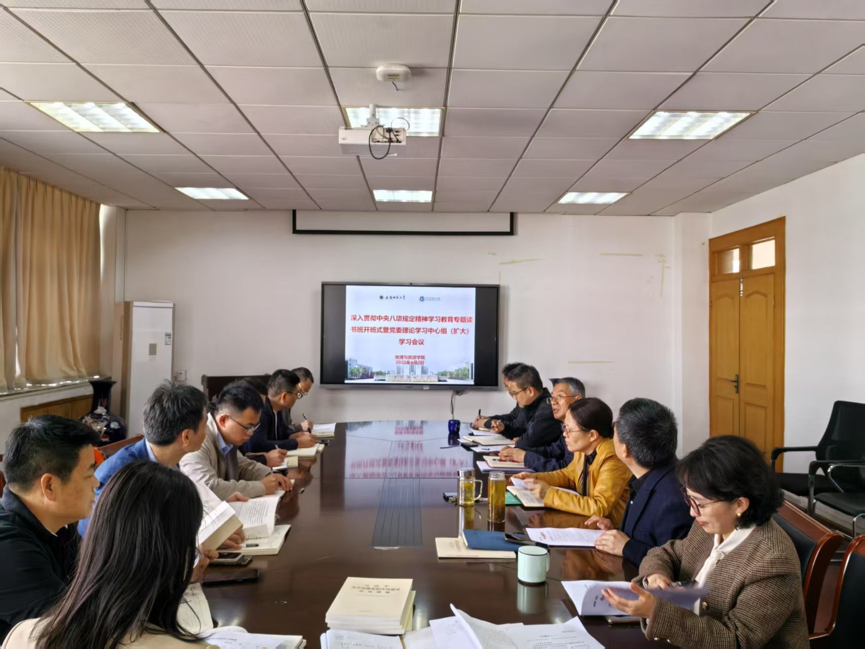 举办深入贯彻中央八项规定精神学习教育专题读书班开班式暨党委理论学习中心组(扩大)学习会,围绕习近平总书记关于加强党的作风建设的重要论述和中央八项规定及其实施细则精神开展专题学习研讨。院党委书记贾冠忠主持会议,院领导班子成员、党支部书记等参加会议。