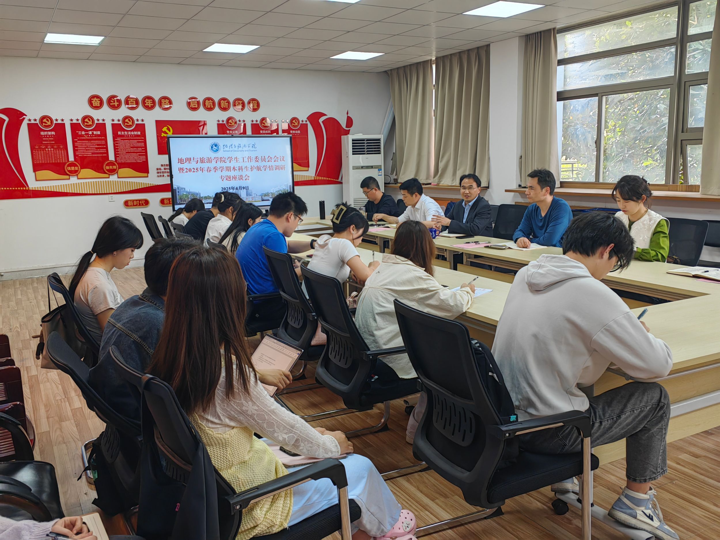 在学院行政楼召开学生工作委员会会议,专题研判2025年春季学期本科生护航学情。座谈会根据专业和年级分为地理地拔地信(非毕业班)、旅游土地城规(非毕业班)和2025届本科毕业生分会场,学院学生工作委员会委员、辅导员以及各班级学生代表参加会议。