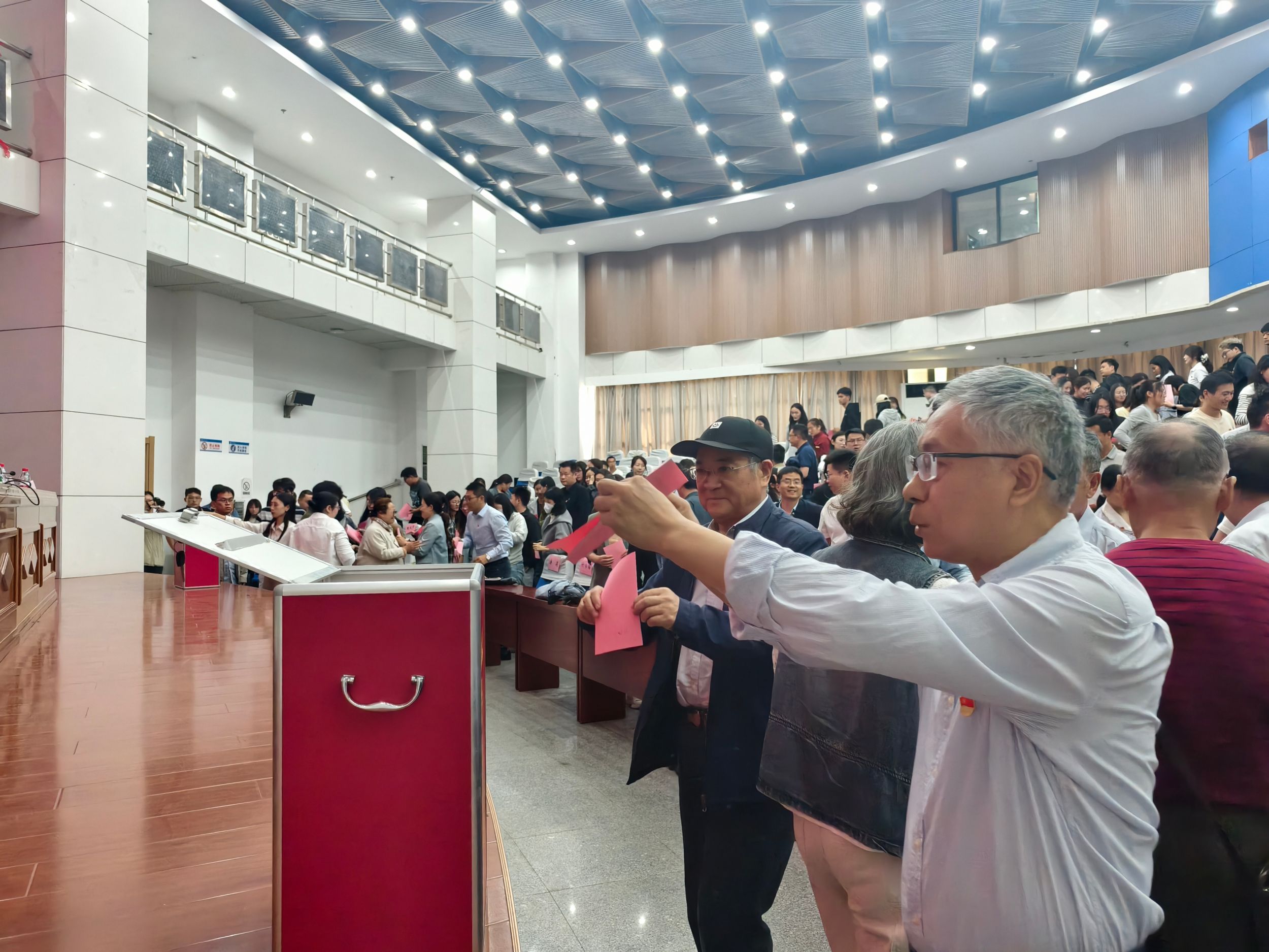 大会在庄严的国歌声中拉开帷幕。张顺代表学院党委介绍了出席校第十二次党代会代表候选人建议人选的产生过程,工作人员宣读了代表候选人建议人选的基本情况、代表选举办法(草案)和监票人建议名单、计票人名单,大会审议并表决通过了代表候选人名单、代表选举办法和监票人、计票人名单。大会采取无记名投票和差额选举的方式,248位到会正式党员认真行使选举权利,投票选举出9名代表(8名教工代表,1名学生代表)。整个选举大会组织井然有序,选举过程符合法定程序,选举氛围庄严热烈。大会在雄壮的国际歌声中闭幕。