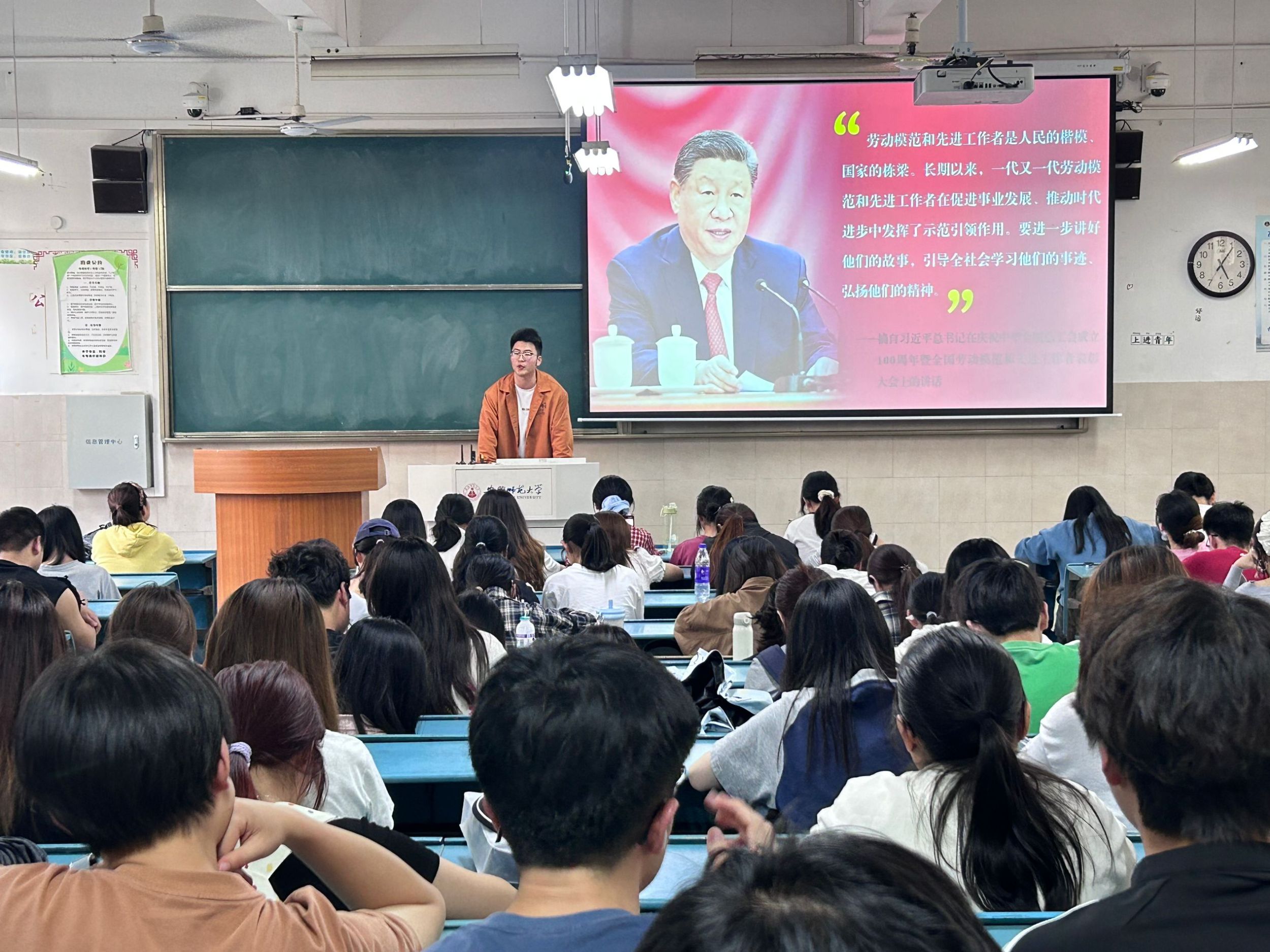 主题班会,强化“劳动最光荣”的思想认识。五一劳动节来临之际,辅导员通过召开主题班会的形式,深入学习领会习近平总书记在庆祝中华全国总工会成立100周年暨全国劳动模范和先进工作者表彰大会上的重要讲话精神,面对面和学生交流劳模精神、劳动精神、工匠精神的时代内涵和重要价值,引导学生深刻认识劳动是一切幸福的源泉,光荣属于劳动者,幸福属于劳动者,以实际行动在劳动中锻炼身体、锤炼意志、增长知识,在辛勤劳动、诚实劳动、创造性劳动中成就青春梦想。