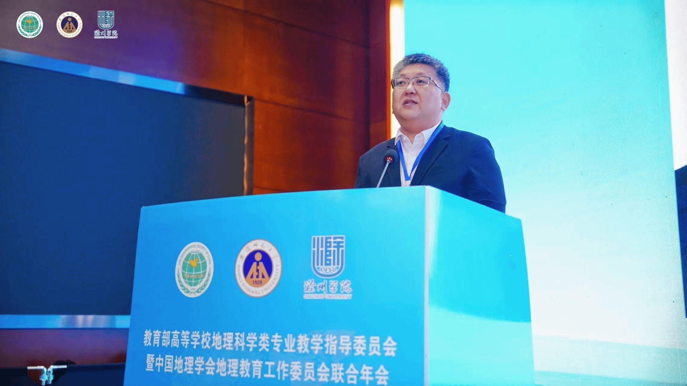 教育部高等学校地理科学类专业教学指导委员会主任、中国地理学会副理事长贺灿飞教授在致辞中指出此次会议以“新时代地理科学发展与人才培养”为主题,聚焦学科前沿与教育创新,强调在当前时代背景下,地理学科需紧密围绕国家发展战略需求、积极拥抱人工智能等新兴技术,加快建设高质量地理教育体系,培养具有全球视野、家国情怀与创新思维的地理拔尖人才。