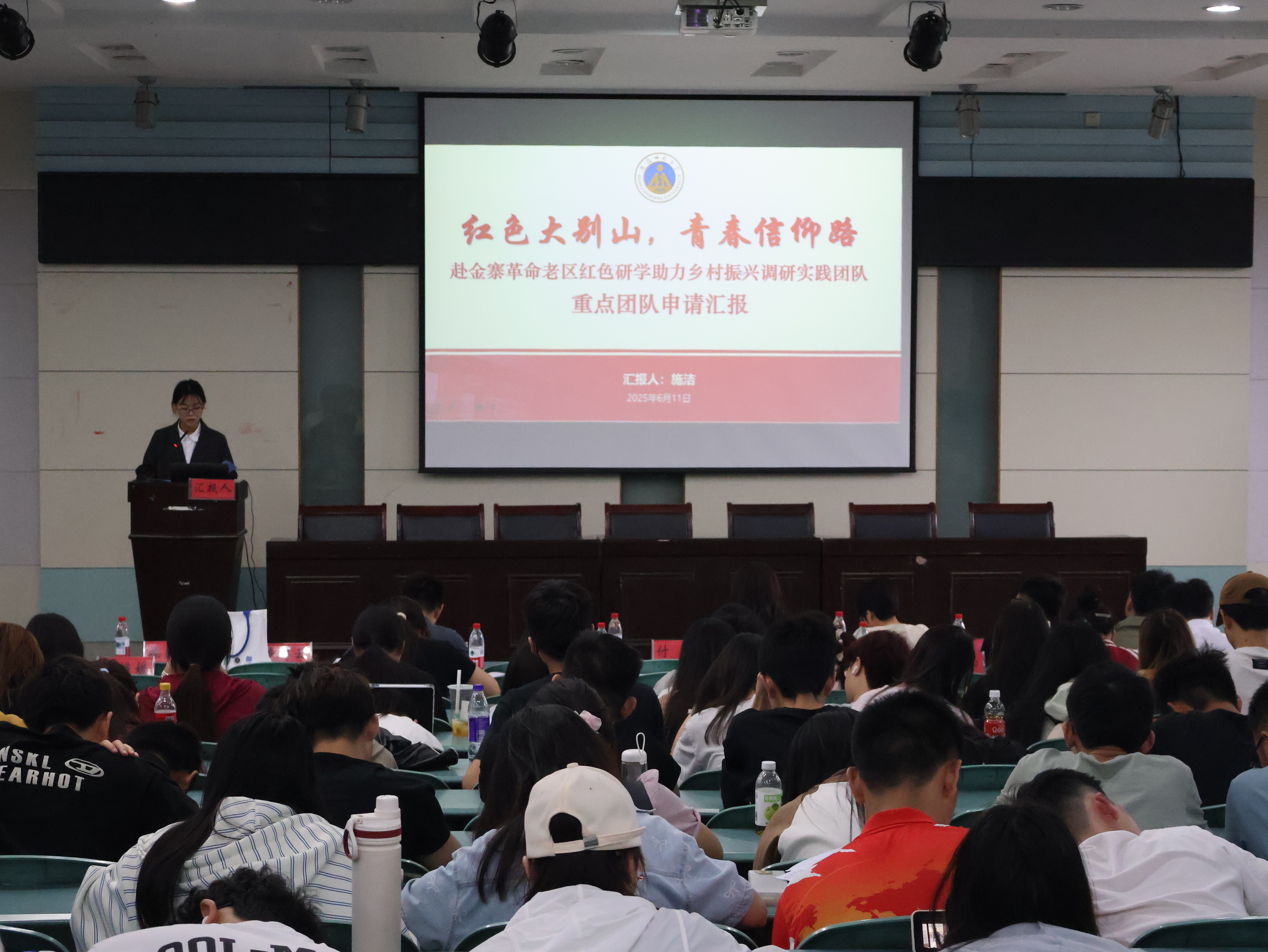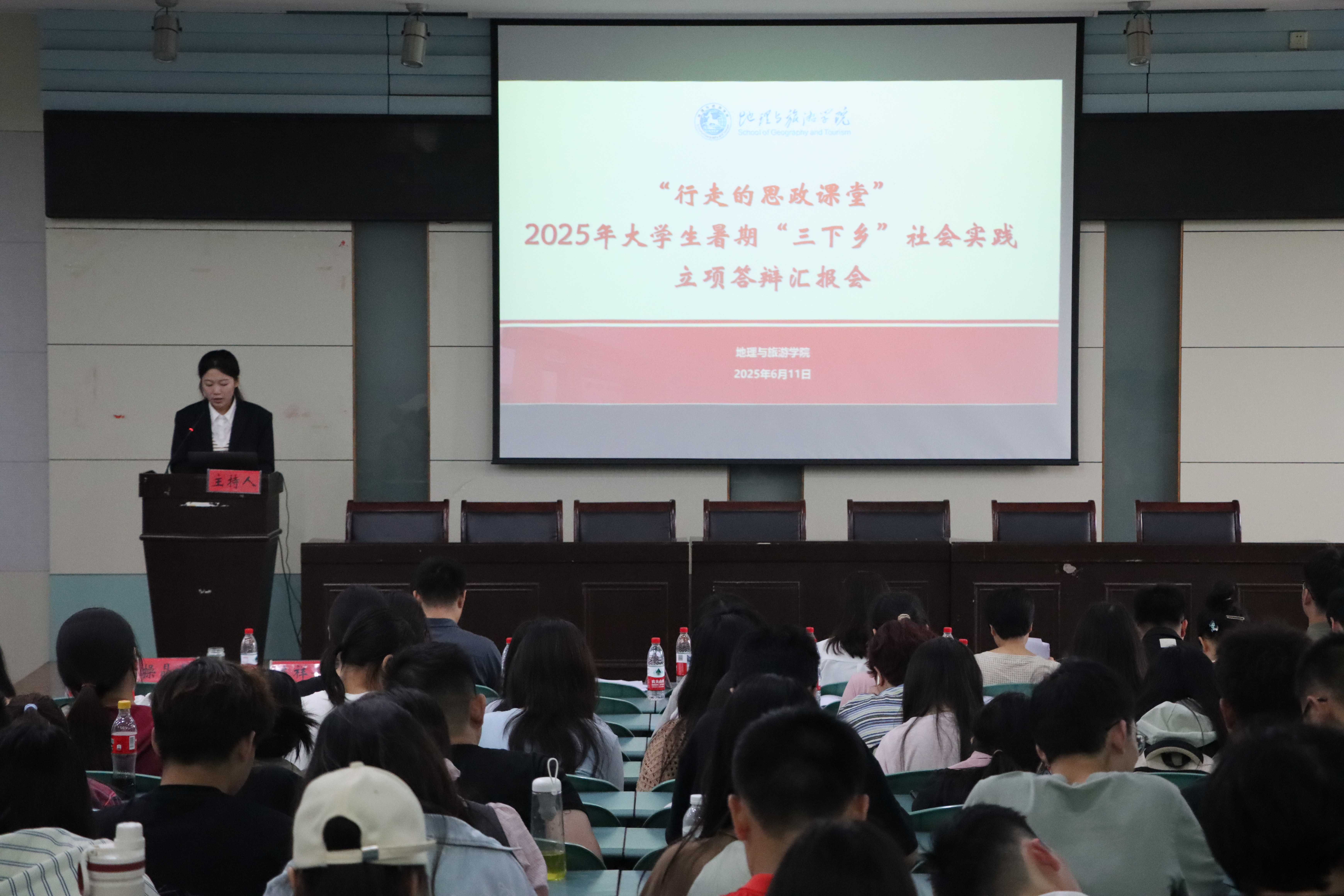 在学院101报告厅举行“行走的思政课堂”2025年大学生暑期“三下乡”社会实践立项答辩汇报会。地理科学专业徐仪红老师、旅游管理专业张兴泰老师、地理信息科学专业季青老师、土地资源管理专业余健老师、城乡规划专业金莹莹老师、学院团委负责人、竞彩网