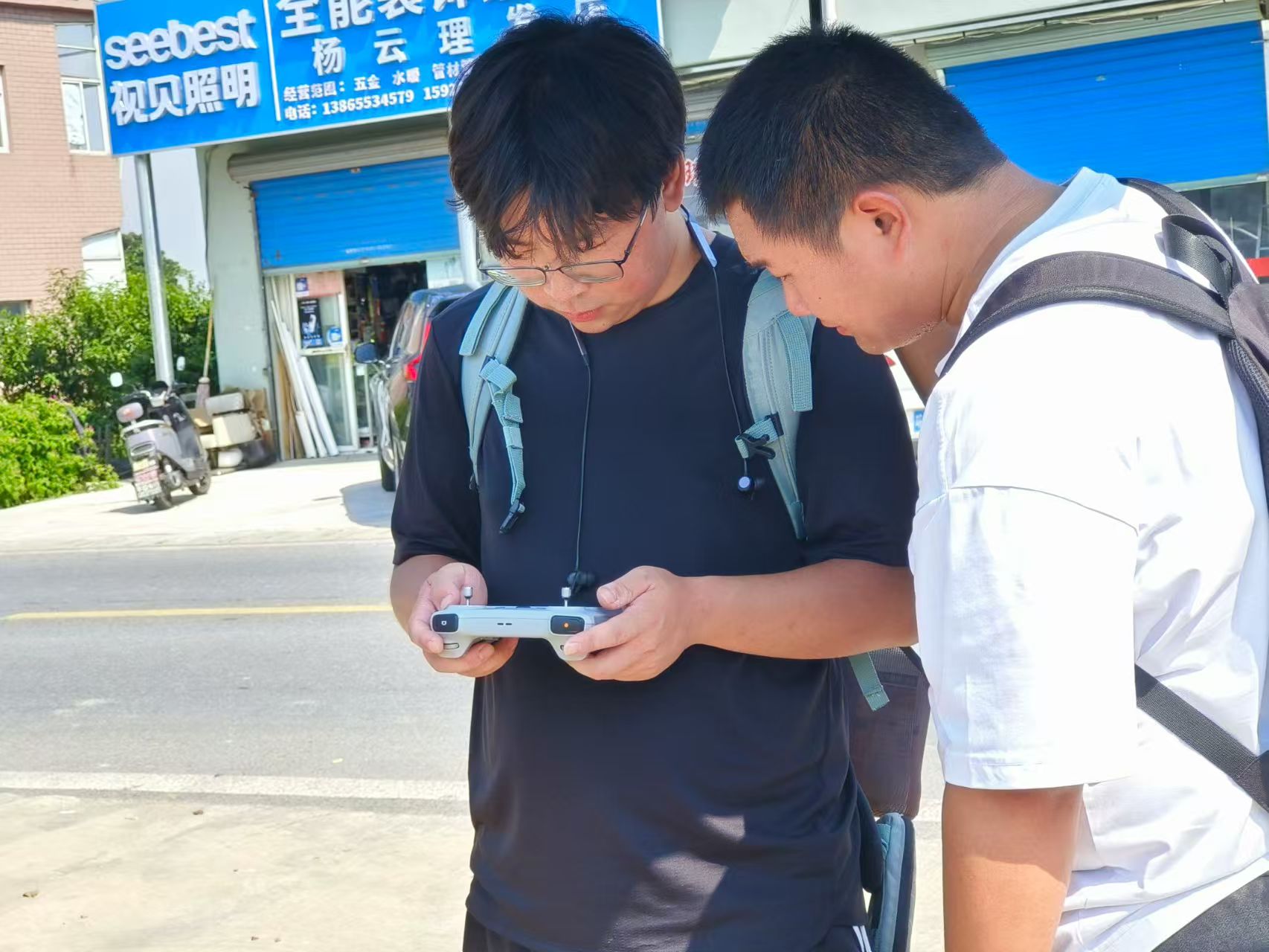 调研现场,团队成员贾欣怡围绕水质管理、藻类调控等关键技术环节,对李敏贵开展了专题访谈,系统收集了生产一线的实践经验与问题反馈。与此同时,队员王梓文琦、黄宇翔操作专业无人机设备,对目标养殖池塘进行了高空全景航拍,获取了高分辨率的空间影像资料,为后续分析池塘形态、水体状况及周边环境提供了重要的地理信息数据支撑。团队成员分工明确,协同推进,确保了调研数据的全面性与可靠性。 调研环节结束后,团队全体成员与李敏贵在现场合影留念。
