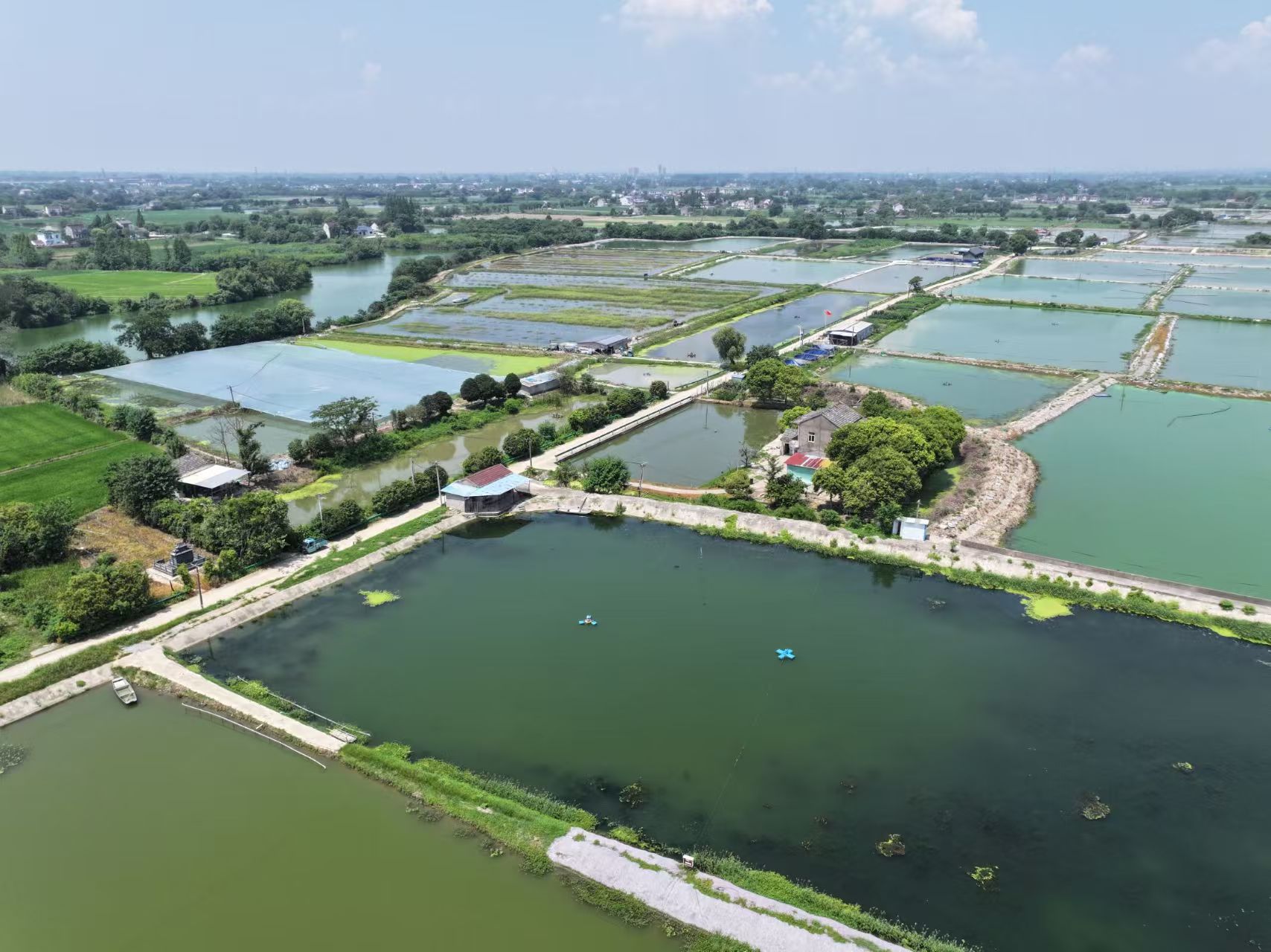 完成首站采访后,团队在当地居民的热心指引下,随即前往资深水产养殖户李敏贵的养殖基地进行实地探访与深入交流。时值七月盛夏,烈日当空,酷暑难当,但队员们不畏炎热,坚持开展调研工作。行进途中,团队成员切身感受到了六郎镇在美丽乡村建设方面取得的显著成效,沿途村容整洁,道路、水利等基础设施完善,展现出生态宜居的乡村风貌,为调研工作提供了良好的环境支撑。