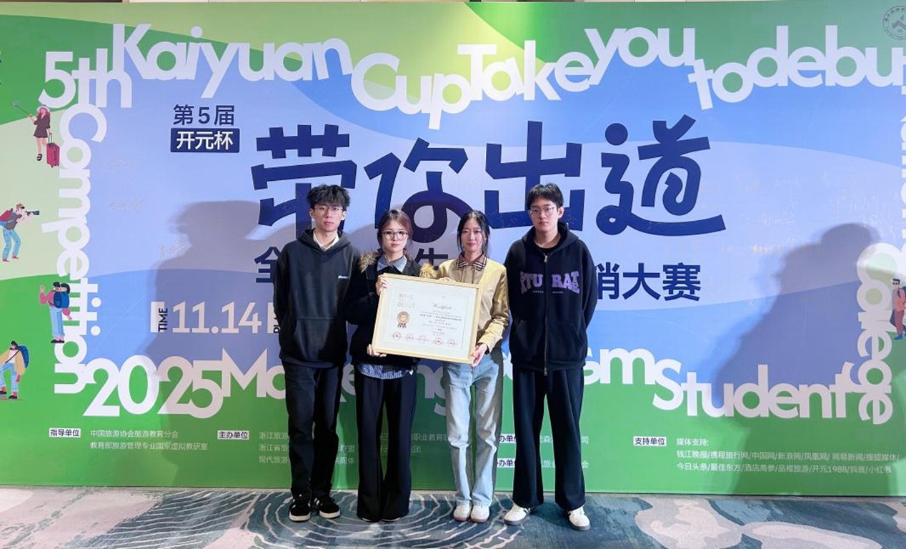 2023级旅游管理专业张顺、李子旭、汪敏、廖浩翔同学代表安徽师范大学参赛,在专业教师洪娟的指导下成功晋级决赛并取得二等奖的好成绩,学校获得优秀组织奖,指导教师荣获最佳指导老师奖。