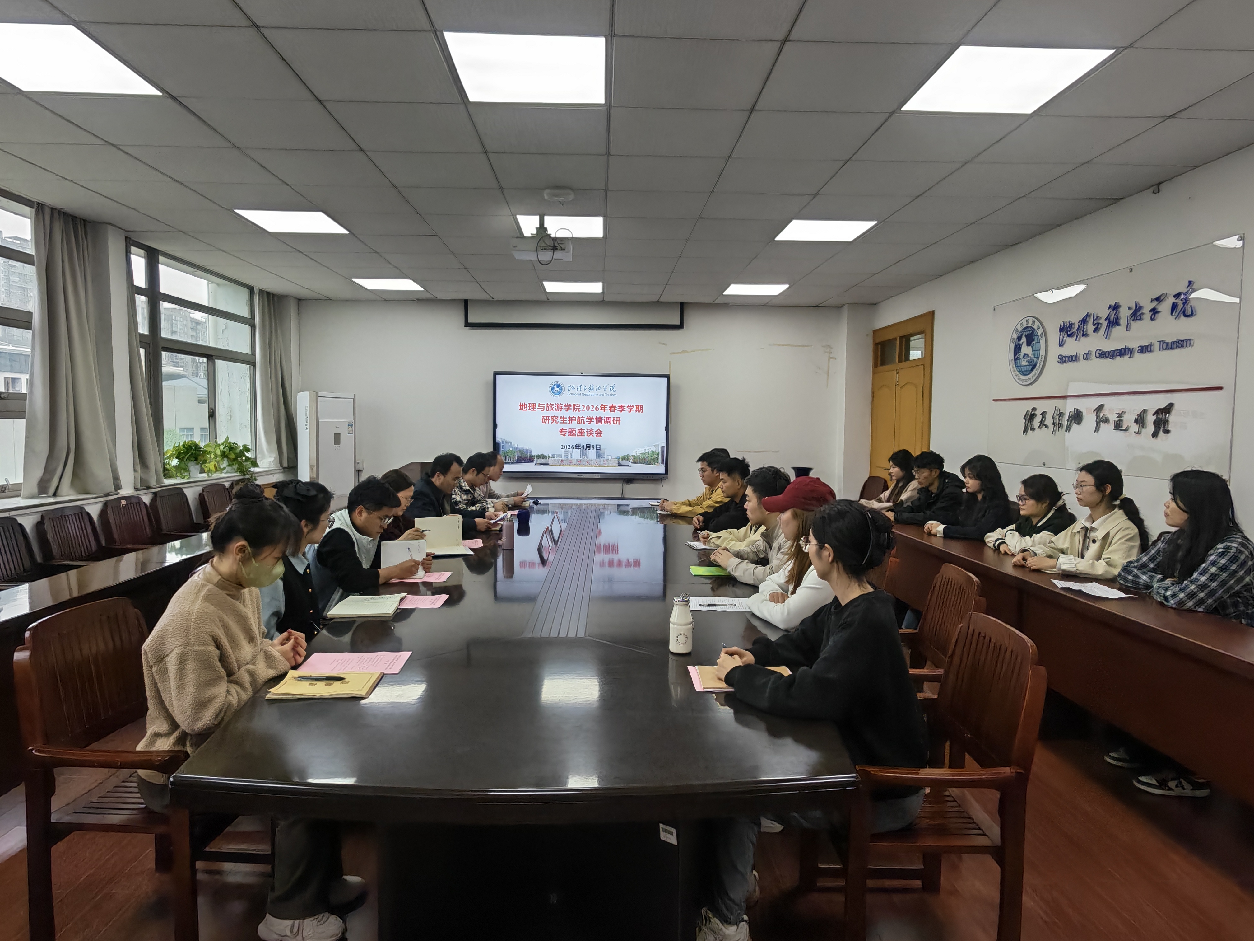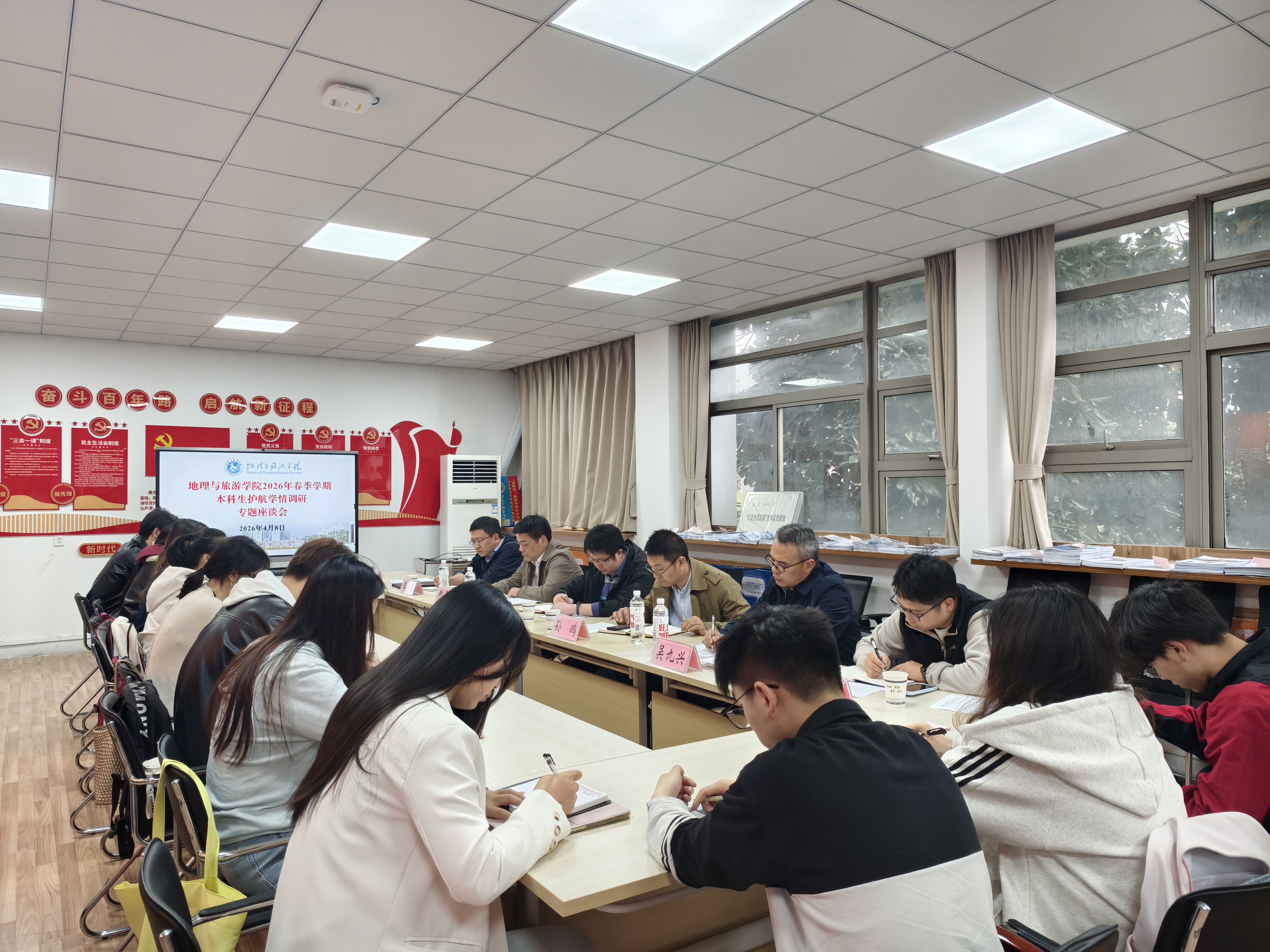 组织召开2026年春季学期本科生、研究生护航学情调研专题座谈会。会议结合专业特点,分设本科地理地拔地信、旅游土地城规和研究生三个分会场同步进行。学院领导班子成员、各专业负责人、点长代表、全体辅导员及各班级学生代表共同参会。