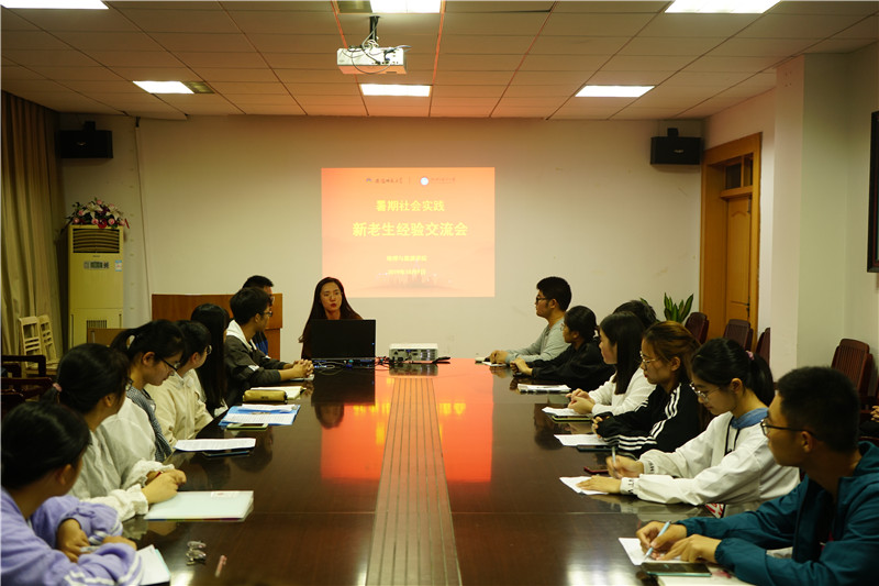 于学院行政楼三楼会议室召开2019年暑期社会实践新老生经验交流大会。学院团委副书记陈祥云,2018级各班级团支书,2019级新生代表参加此次会议。