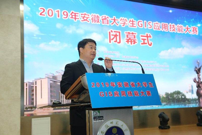 副院长曹卫东主持。大赛组委会执行主任、安徽师范大学党委常委、副校长陆林,大赛仲裁委员会仲裁长、中国地理信息产业协会教育与科普工作委员会副主任、南京师范大学教授张书亮,大赛组委会委员、安徽师范大学教务处处长周端明,大赛承办单位有关领导、嘉宾及各高校教师和学生代表参加了闭幕式。