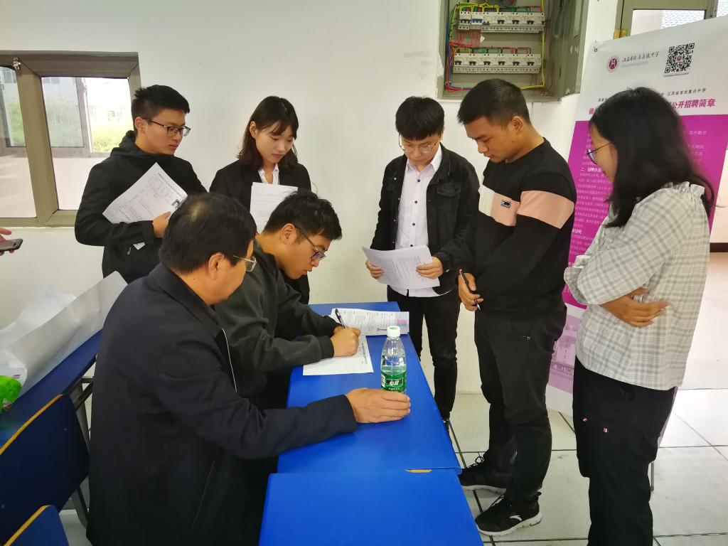 招聘宣讲。学院党委副书记乔静、毕业班辅导员陈健以及二十多名地理科学专业应届毕业生参会。学院2017级地理科学专业本科生努尔东·吐尔逊来到现场看望母校领导老师。