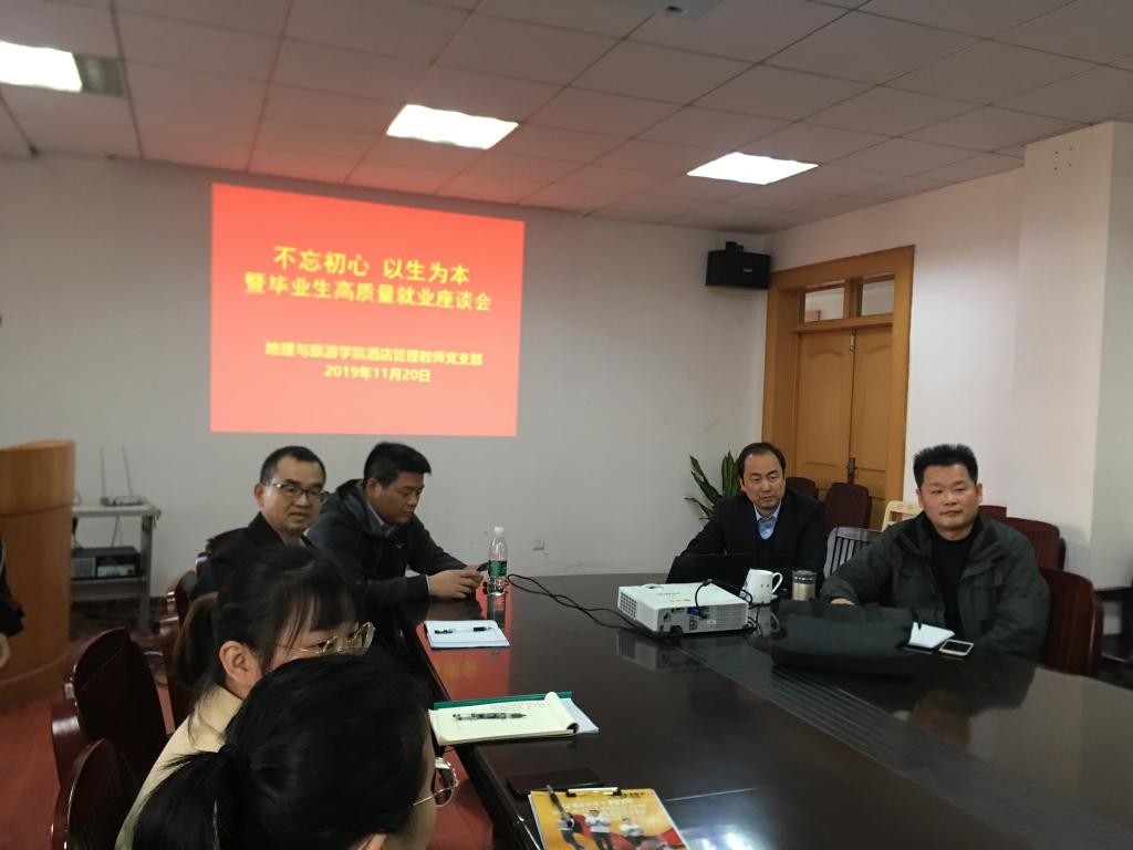 酒店管理专业教师党支部认真组织支部党员同志开展讨论和学习,坚持以立德树人为目标,以做“四有”好老师,当好“四个引路人”为重点,聚焦问题抓落实,于近日召开了“不忘初心·以生为本”暨2020届酒店管理专业毕业生高质量就业座谈会。学院党委副书记乔静,全体酒店管理党员教师和毕业生参会。会议由党员教师张伟主持。