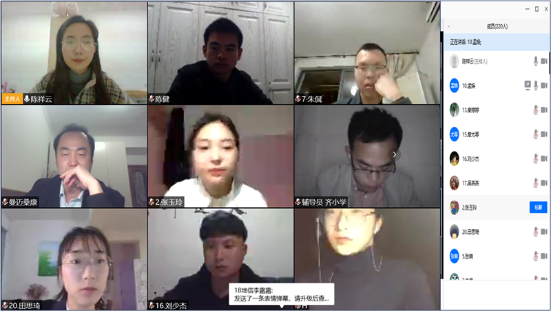 会议伊始,陈祥云简要介绍本届活动评选情况、评选环节以及评选要求。经个人申报、班级团支部推荐及学院初选,共有27名来自全院各年级各专业的学生进入最终的线上评选汇报环节。参评学生按序在线进行汇报演讲,用PPT全方位展示个人事迹和荣誉。