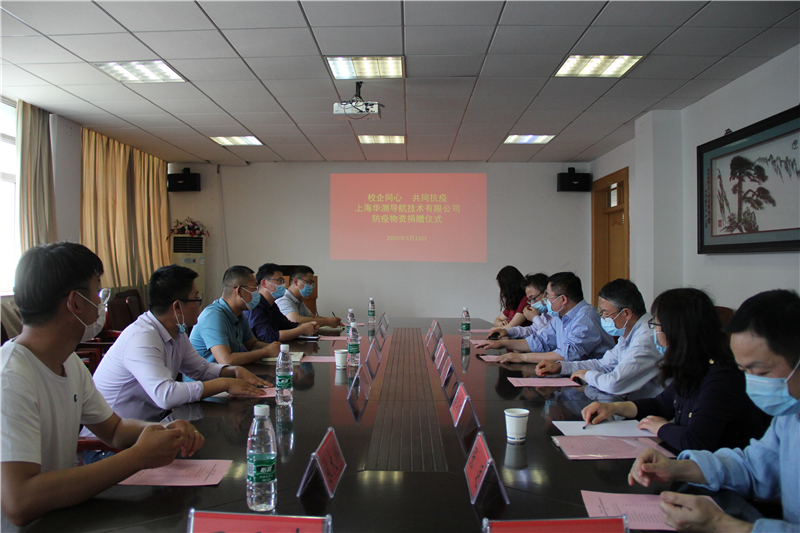 举行“校企同心、共同抗疫”上海华测导航技术股份有限公司捐助抗疫物资仪式暨校企合作交流座谈会。上海华测导航副总经理宋少华、安徽省公司总经理戴诗奇、安徽省高校销售经理秦报龙、安徽区域经理张学、安徽省技术经理宋大游等代表上海华测导航技术股份有限公司向竞彩网