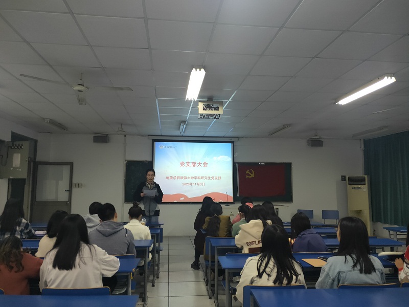 旅游土地学科研究生党支部在学院实验楼202教室召开支部大会,会议讨论表决接收预备党员相关事宜。大会应到26人,实到22人,其中有表决权的党员应到21人,实到18人。会议由支部书记侯颖主持。