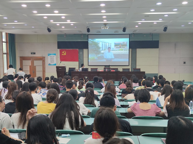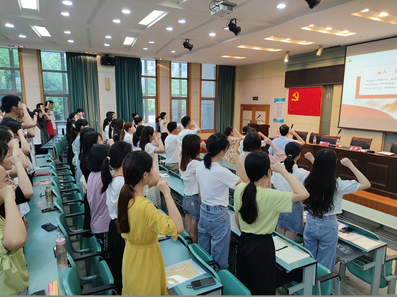 党委在院实验楼101报告厅举行2021年新党员入党宣誓仪式暨毕业生党员重温入党誓词活动。院党委书记贾冠忠、党委副书记乔静、各本科生支部书记、毕业生党员与2021年新发展入党的预备党员参加仪式,面对党旗庄严宣誓。仪式由酒店土地本科生党支部书记王美主持。