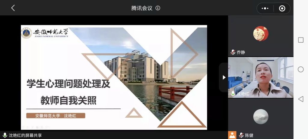 邀请校大学生心理健康教育中心副主任、心理咨询师沈艳红为全院教职工做心理健康专题线上培训。会议由学院院长方凤满主持,学院全体教职工共计110余人参会。