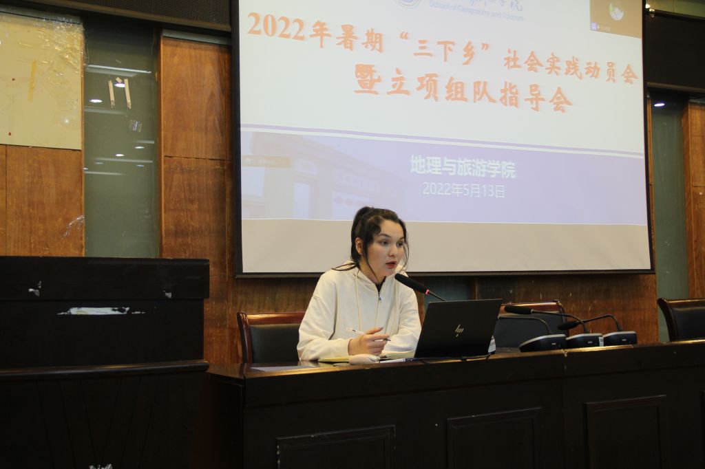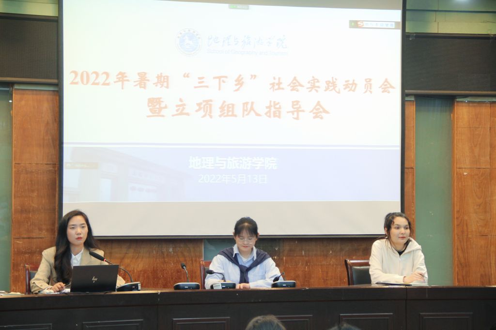 在院实验楼101报告厅举行2022年暑期“三下乡”社会实践动员会暨立项组队指导会。2020级、2021级本科生及研究生各班级班长、团支书,有意向组建暑期社会实践团队的负责人等参加线下会议,各班级学生代表通过腾讯会议平台线上参会。安徽省2021年暑期社会实践优秀调研报告一等奖团队负责人、2019级旅游管理专业董婷,“情系川皖·圆梦巴蜀”山区留守儿童支教团队负责人、2020级地理科学(师范)专业苏热叶受邀参会。会议由竞彩网