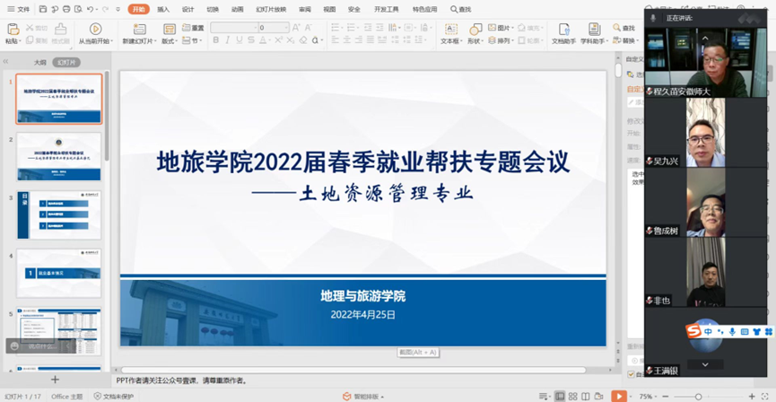 为深入落实学校“一线工作法”相关要求,发动全院教师力量,学院党委副书记乔静统筹安排,带领全体毕业班辅导员深入各专业教研室,传达国家、学校毕业生就业相关工作要求,介绍推进就业工作的方法技巧、以及拓宽就业渠道的途径等,听取各专业当前就业工作进度以及举措。乔静指出,在当前严峻复杂的形势下,就业工作困难程度有所提升,要狠抓工作落实、加快工作进度,切实为毕业生办实事、解难题。他还详细阐述了2022年就业促进周工作安排、“百日冲刺”计划等,提出要严格执行教育部关于就业工作的“四不准”要求,全体教师与学工队伍一道,共同引导毕业生树立正确的就业观念,力争引导学生尽快落实工作单位。与会人员针对2022届毕业生就业现状与困难展开研讨,提出工作意见和建议,汇报精准帮扶的毕业生就业去向落实情况。