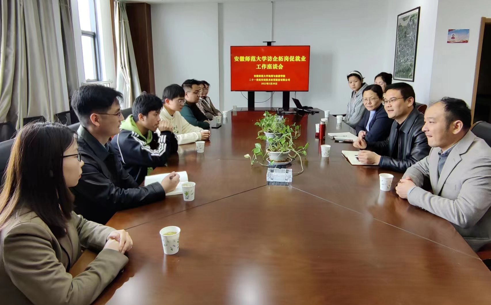 学院院长方凤满、党委副书记付勇、地理信息科学专业负责人宋立生以及毕业班辅导员代表等一行前往淮南市二十一世纪(安徽)空间技术应用有限公司开展访企拓岗促就业行动。