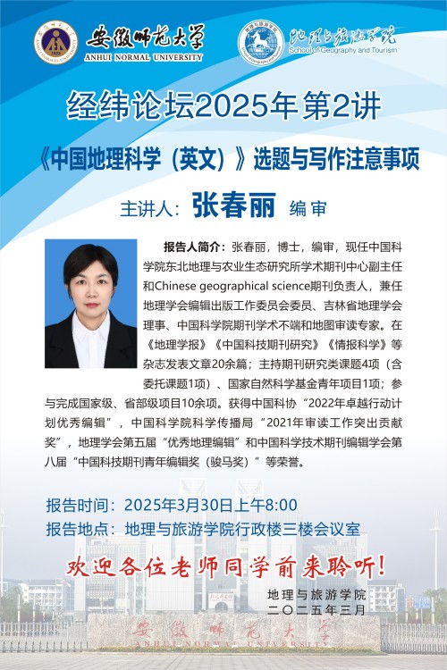 【学术预告】经纬论坛第68讲:《中国地理科学(英文)》选题与写作注意事项