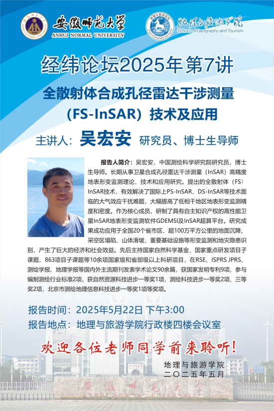 【学术预告】经纬论坛第73讲:全散射体合成孔径雷达干涉测量(FS-InSAR)技术及应用
