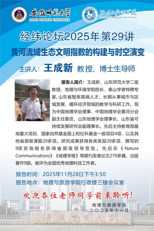 【学术预告】经纬论坛第95讲: 黄河流域生态文明指数的构建与时空演变