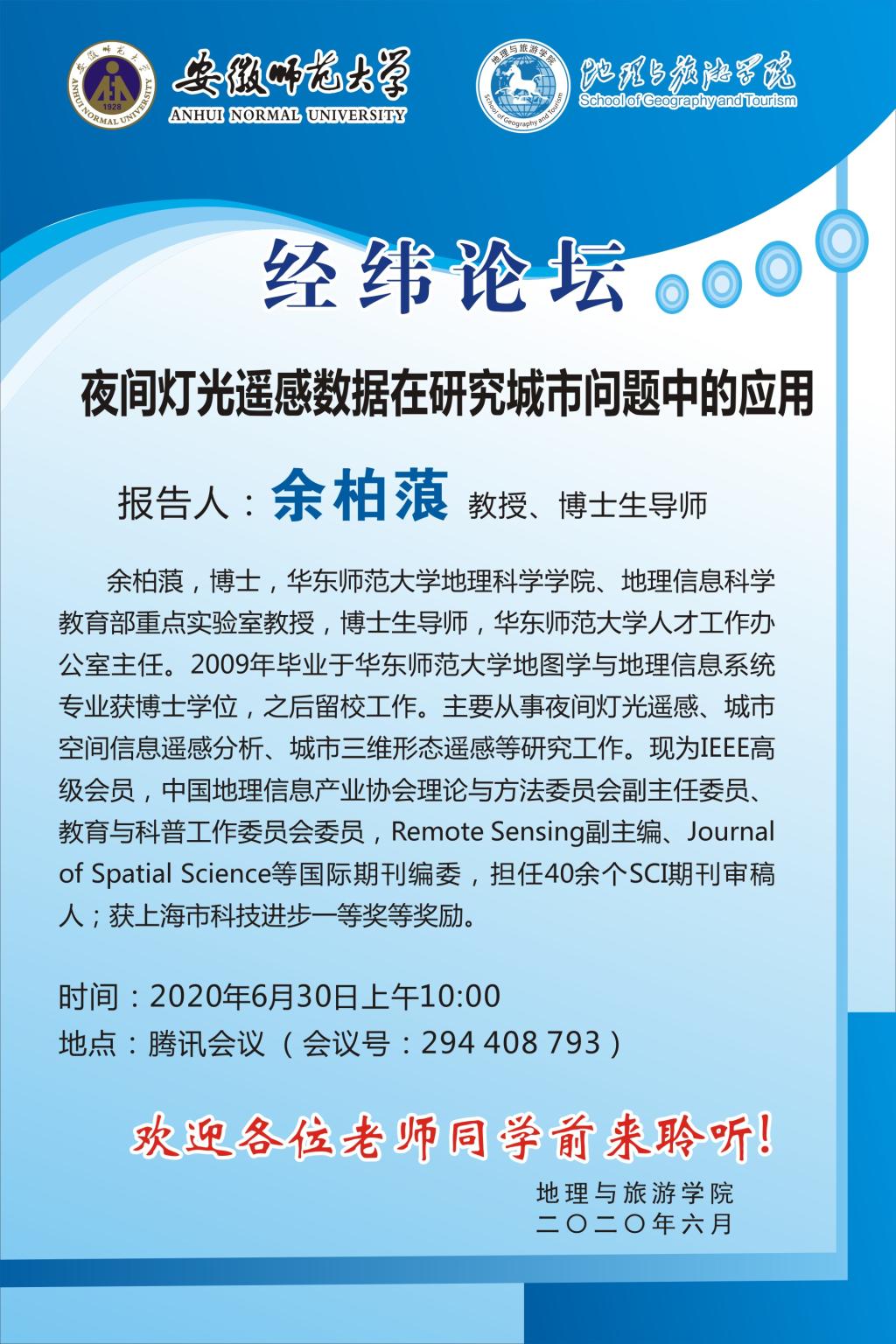 【学术预告】余柏蒗:夜间灯光遥感数据在研究城市问题中的应用