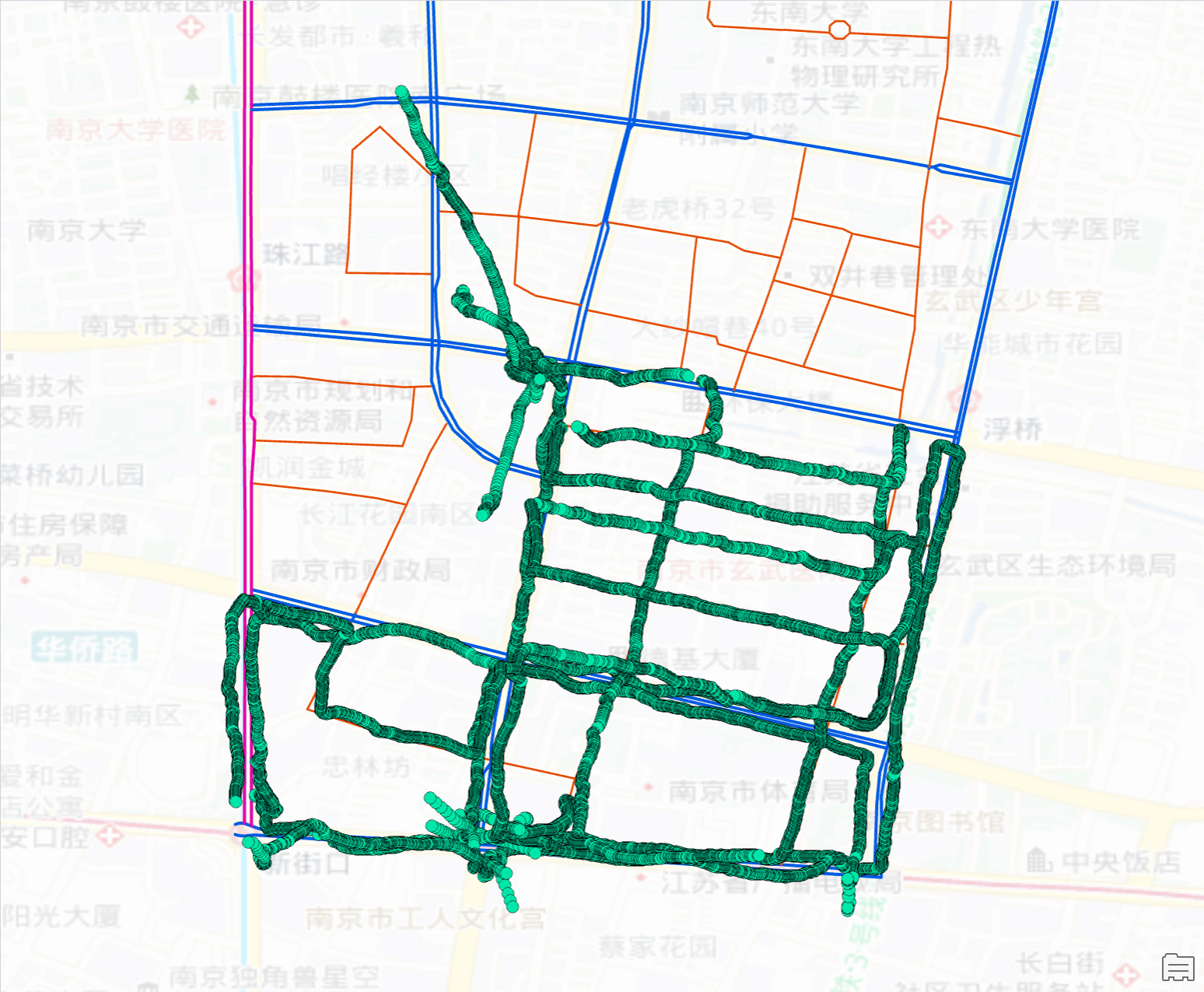 穿行古都,仪器精准记录数据。调研团队共设计9条路线,约12公里路程,团队成员通过佩戴P-1 Mark Ⅱ仪器专业型GNSS记录仪和E4手环,针对玄武区进行数据采集与记录,确保数据的全面性和准确性。