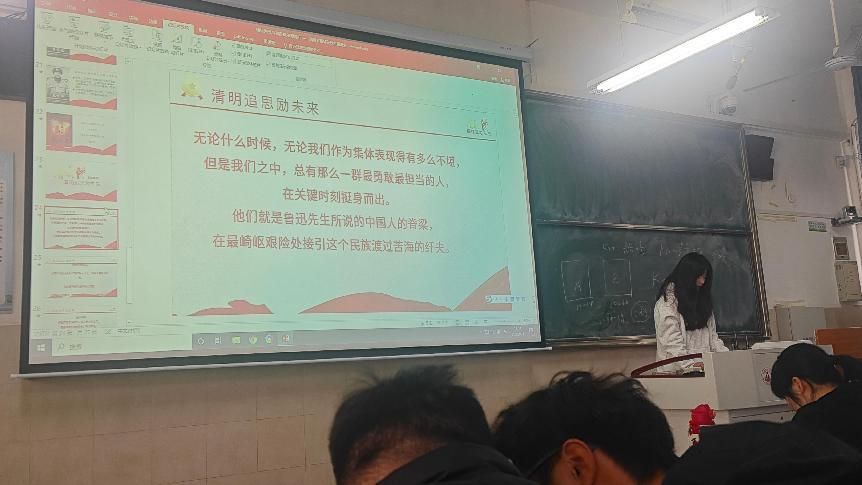 最后,在“清明追思励未来”环节,团支书呼吁同学们铭记历史,珍惜当下和平、安定的幸福生活。鼓励大家踏着革命先烈的足迹,努力学习,奋勇拼搏,砥砺前行,在革命先烈爱国精神的感召下健康成长,用实际行动传承中华优秀文化和传统美德。