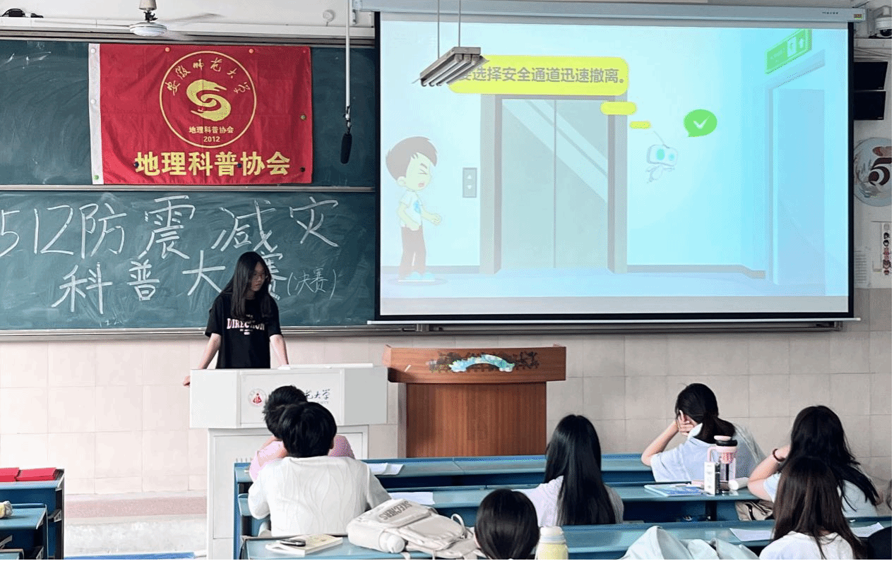 528日下午,由地理科普协会承办的"5.12"防震减灾知识科普大赛决赛于行知楼5号楼203教室举行。大赛共吸引了全校445名学生的积极参与,为普及防震减灾知识搭建了良好平台,取得了显著的科普成效。经过初赛选拔,共十一组优秀选手入围决赛。