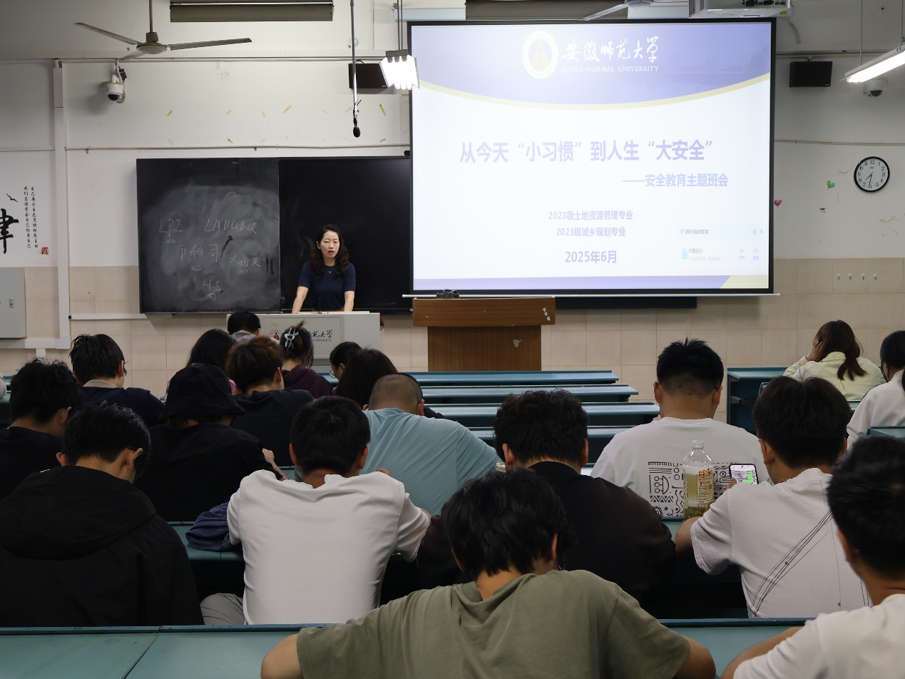 “大学生护航”行动计划,进一步增强学生安全意识,提升同学们的安全防范能力,2025年6月2日晚七点三十分,2023级土地资源管理、城乡规划专业在行知楼2050404召开安全教育主题班会,2023级土地资源管理、城乡规划专业全体同学参加。班会由辅导员李婷君主持。