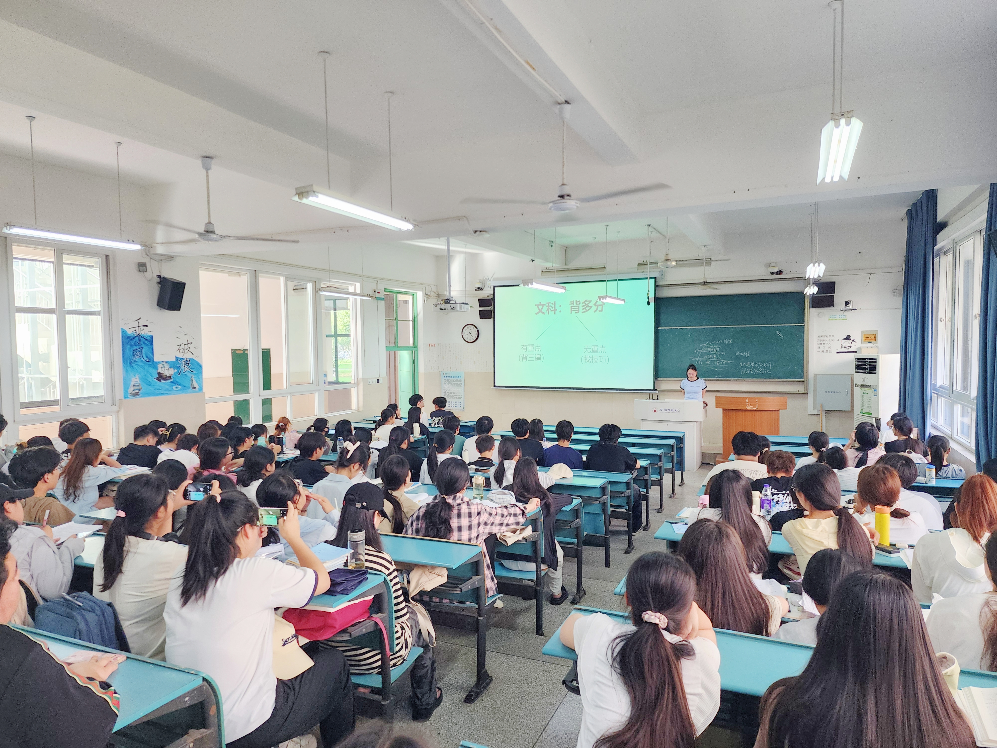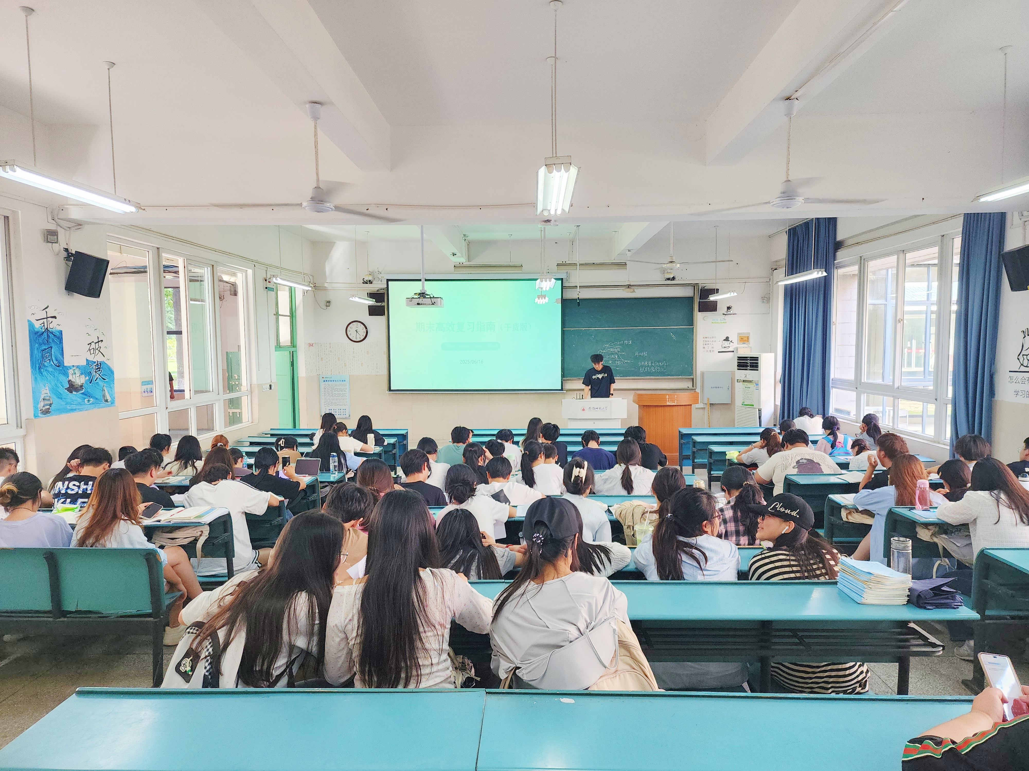 针对期末考试复习,班会特邀2023级学业成绩优异的同学们分享了他们的“高效备考策略与经验”。同学们围绕“时间管理与规划”“方法优化与重点突破”等方面详细介绍了备考实用技巧。韦银艳进行了补充指导,提醒同学们积极与任课教师沟通,澄清疑难;保持规律作息,以最佳身心状态投入复习。此外,班级前期还成立了“学习护航”小组,以先进带后进一对一督促指导期末备考,44名同学参与。