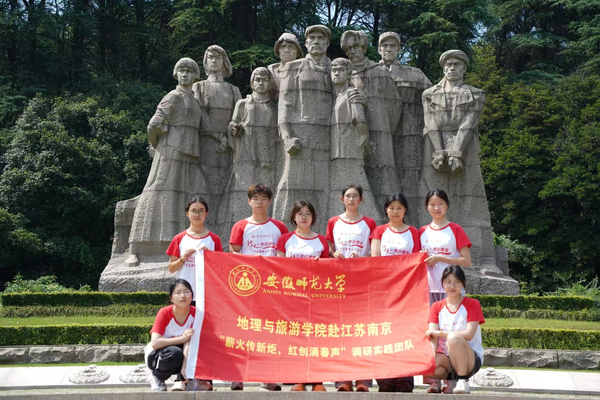 2025年7月2日,南京雨花台烈士陵园内,苍松翠柏掩映下的烈士群雕庄严肃穆。安徽师范大学竞彩网