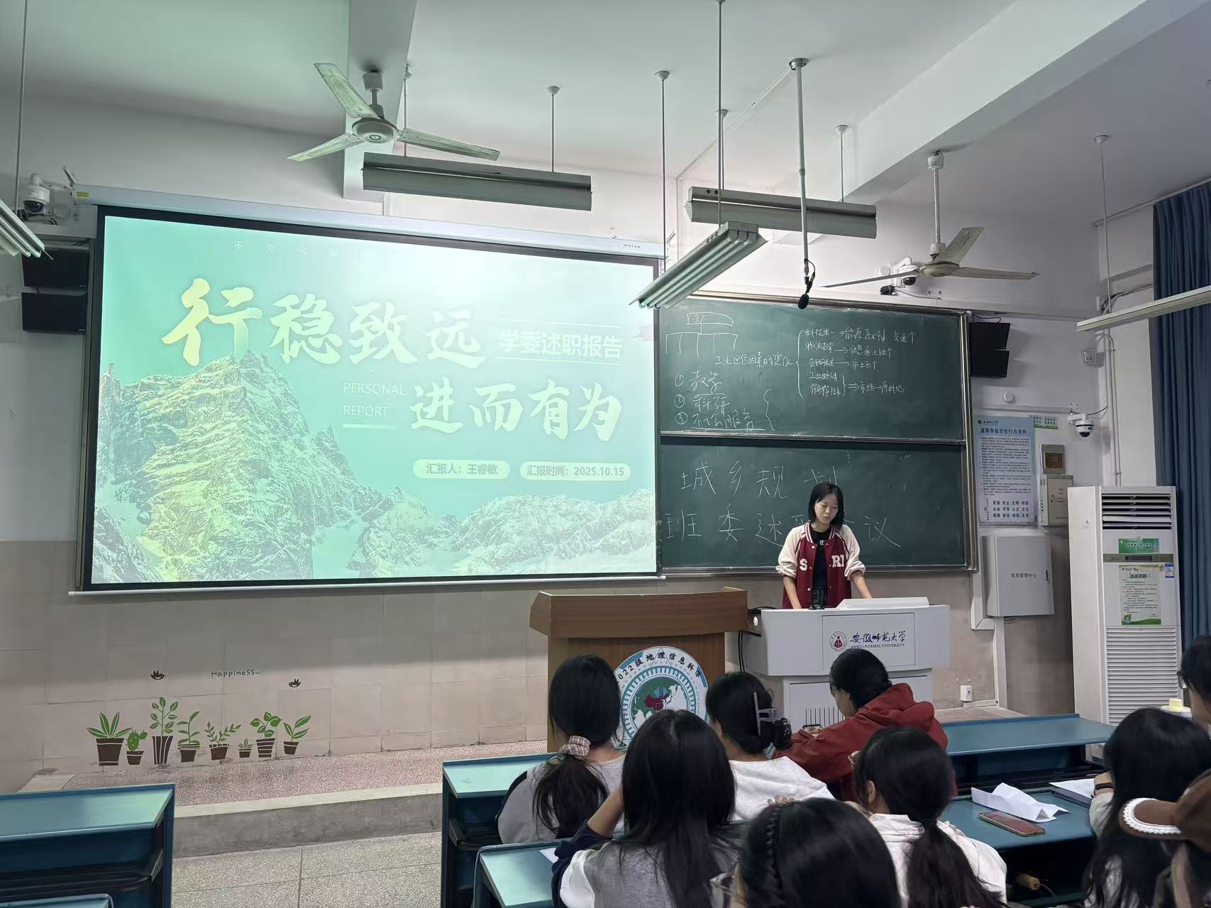 本次大会既是对班委履职情况的全面回顾与检视,也是班级民主治理、团结奋进的实践。在述职环节中,班委成员依次登台,结合PPT,从思想建设、学风营造、活动组织、日常管理等多个维度,系统回顾了过去一年的工作成效。