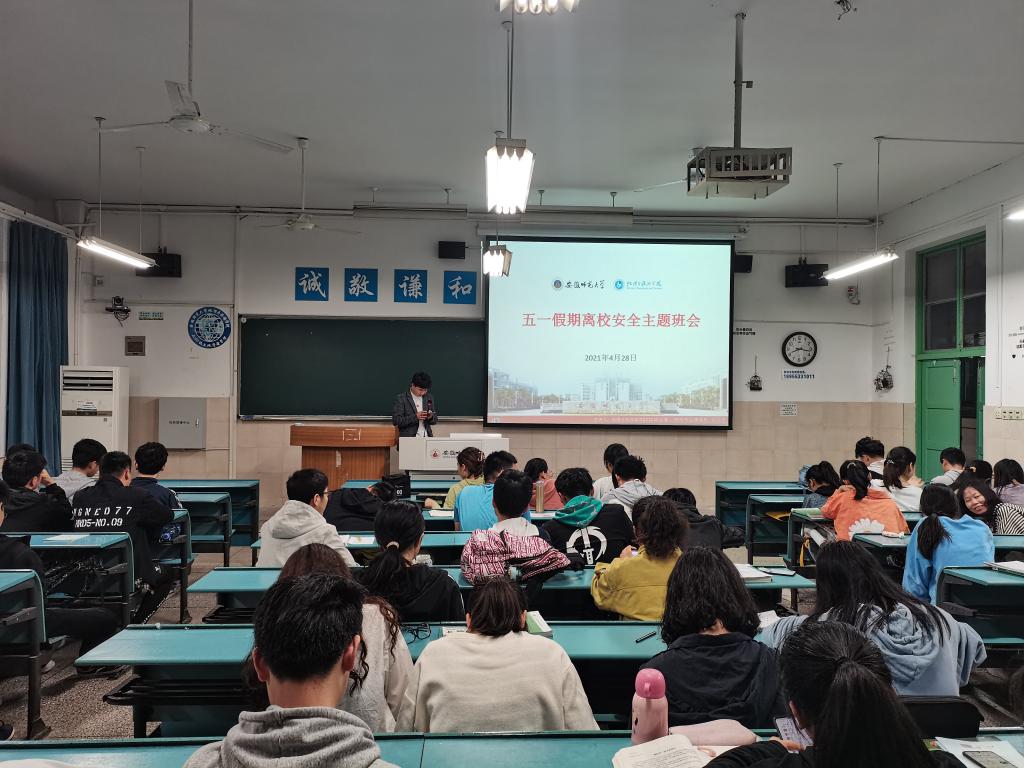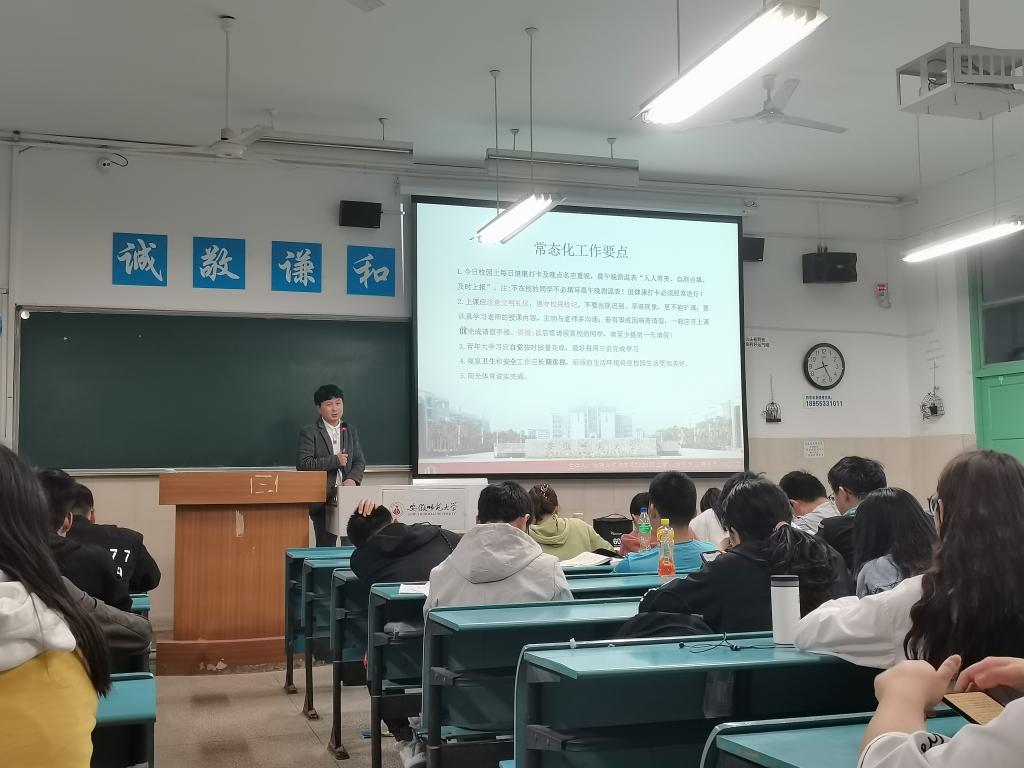 刘少杰 袁明峻 陆峻然):五一离校安全行,疫情防控不放松。为有效落实学校《关于做好2021年劳动节期间学生安全教育管理工作的通知》精神,增强学生安全防范意识和自我保护能力,切实做好学生五一假期离校前的相关工作,4月28日晚上,2020级土地资源管理和2020及城乡规划专业召开了五一假期离校安全主题班会,会议由辅导员刘少杰主持,2020级土地资源管理和2020及城乡规划专业全体学生参加。