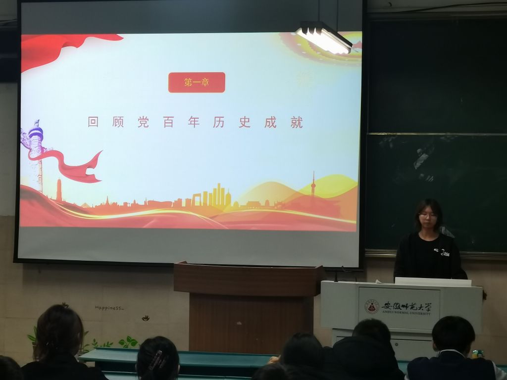 通过集体学习《中共中央关于党的百年奋斗重大成就和历史经验的决议》,刘嘉瑶带领大家回顾了党的百年重大成就和百年奋斗的历史意义,同学们学习热情高涨,深刻认识到百年来党带领中国人民不断努力奋斗的艰辛历程,并纷纷表示自己将更加坚定共产主义信仰,永远跟党走。
