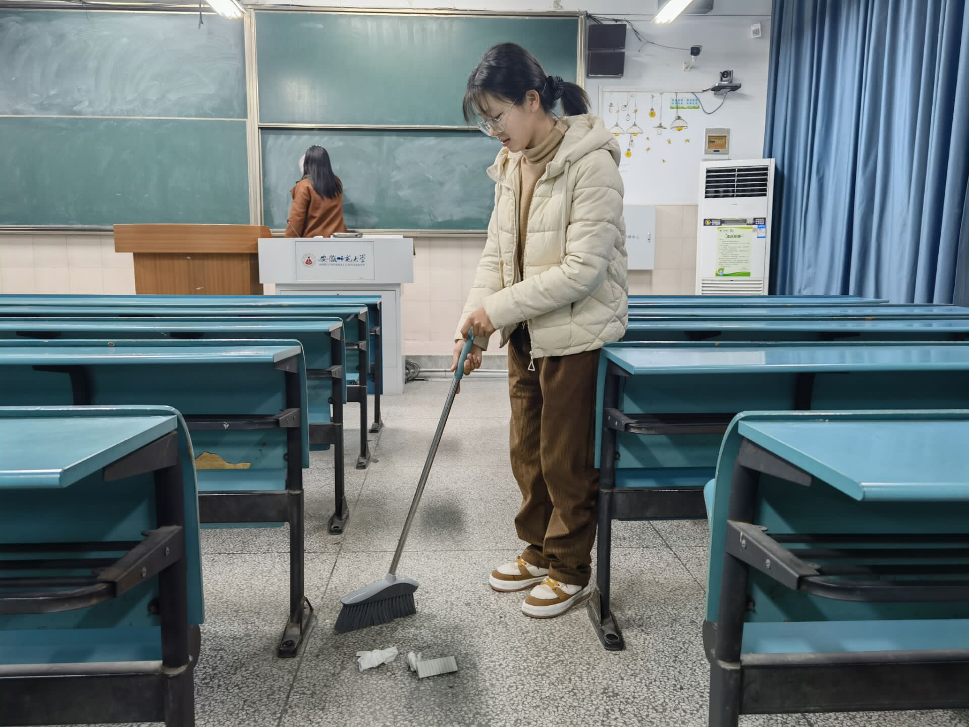 行政楼、行知楼教室开展打扫卫生以及办公室整理等志愿服务活动。每位同学根据各自的任务领取不同的卫生工具,翁丹煜、栾晴等同学负责教师办公室和会议室的整理,帮助老师整理文件、打扫会议室;林沂钲、刘雨露等同学负责班级教室的卫生清扫;朱雅洁、李子贤也督促每位同学按规整理内务,打扫寝室。同学们不怕脏不怕累,服从调遣,合理分工,积极对待各自的任务,顺利完成了本次志愿服务活动。活动结束后,同学们纷纷表示今后将会积极参与此类活动,并带动更多人加入到志愿者活动中,让同学们树立良好的榜样意识,为建设美丽校园贡献力量。