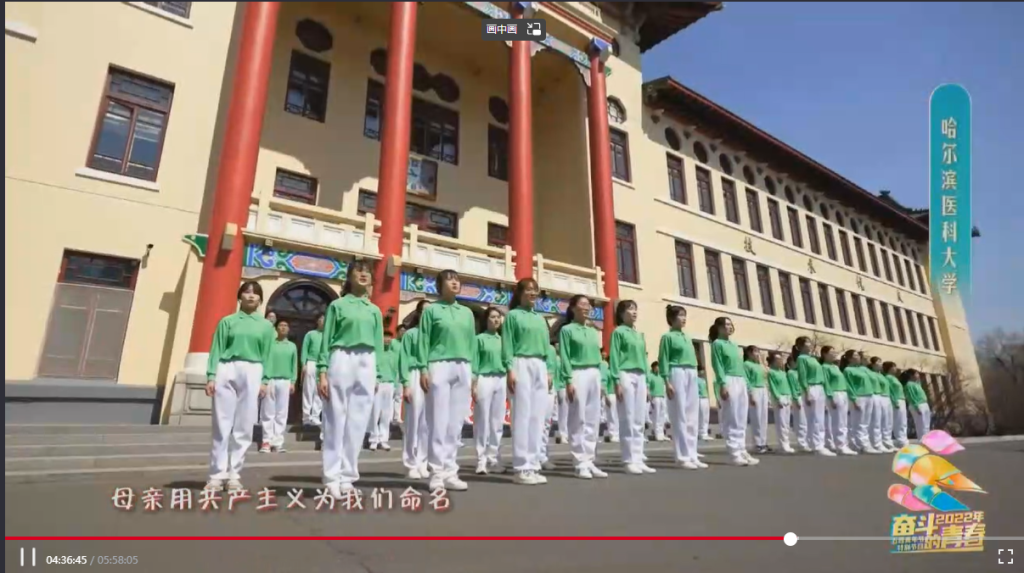 观看学习五四主题网络直播活动结束后,宣传委员孔馨语组织同学们一起拍摄“庆祝中国共青团成立一百周年的祝福语”视频,以表达同学们对于党的热爱和赞美之情,同时向班内外宣传建团百年的重要历史时刻,响应时代的号召。此次视频拍摄活动,极大地促进了班集体的爱国氛围,加强了同学们责任担当,坚定了同学们的理想信念。