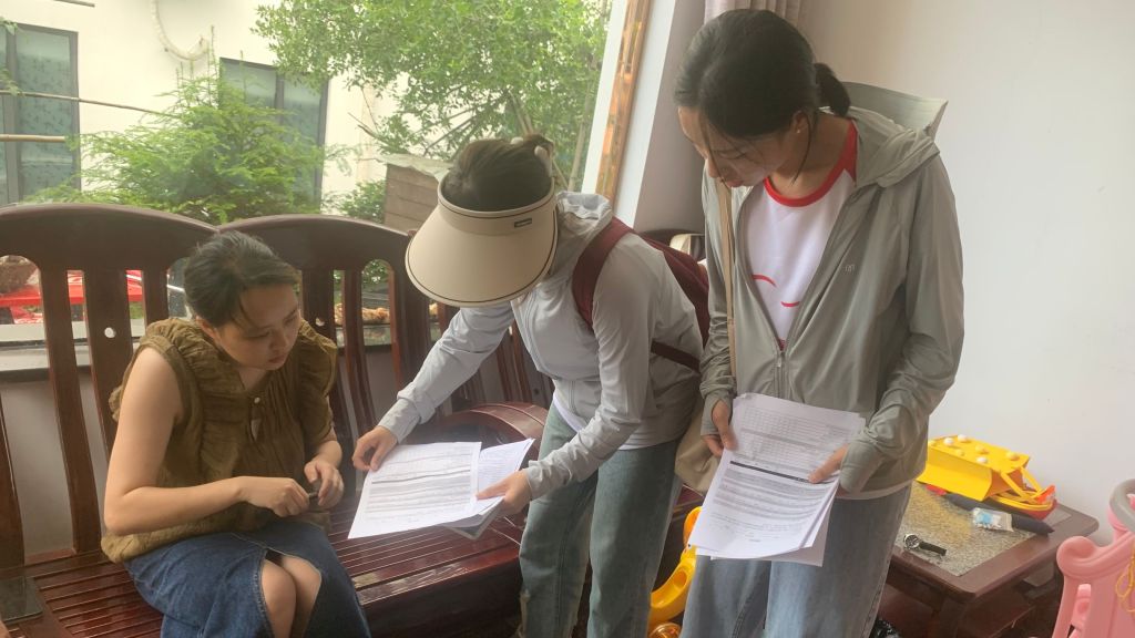 团队主要就乡村产权变动及其相关的问题进行问卷调查与深度访谈。了解当地的发展状况,居民的产权变动情况,以及从不同方面探索影响产权变动的因素等。实践团队通过笔录、录音、拍照等方式记录每位居民对当地空间功能变化、产权变化的认识与感想。调查中团队针对不同居民的情况,队员用亲切的地方语言和灵活的提问方式进行调研,礼貌且耐心对待每一位居民,对于晦涩的专有名词,队员一一进行解答。